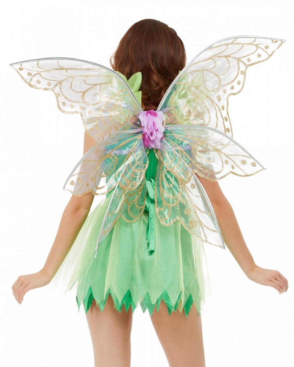Du bekommst Elfenflügel in zartem Lila mit Glitzer als Kostümzubehör. Diese Feenflügel sind in One Size Розмір verfügbar und bestehen aus zartem, transparentem Material. Gold-Ornamente machen die Kostümflügel zum echten Blickfang! Die Elfen Kostümflügel mit Glitter lassen sich mittels Gummiband befestigen und halten optimal.