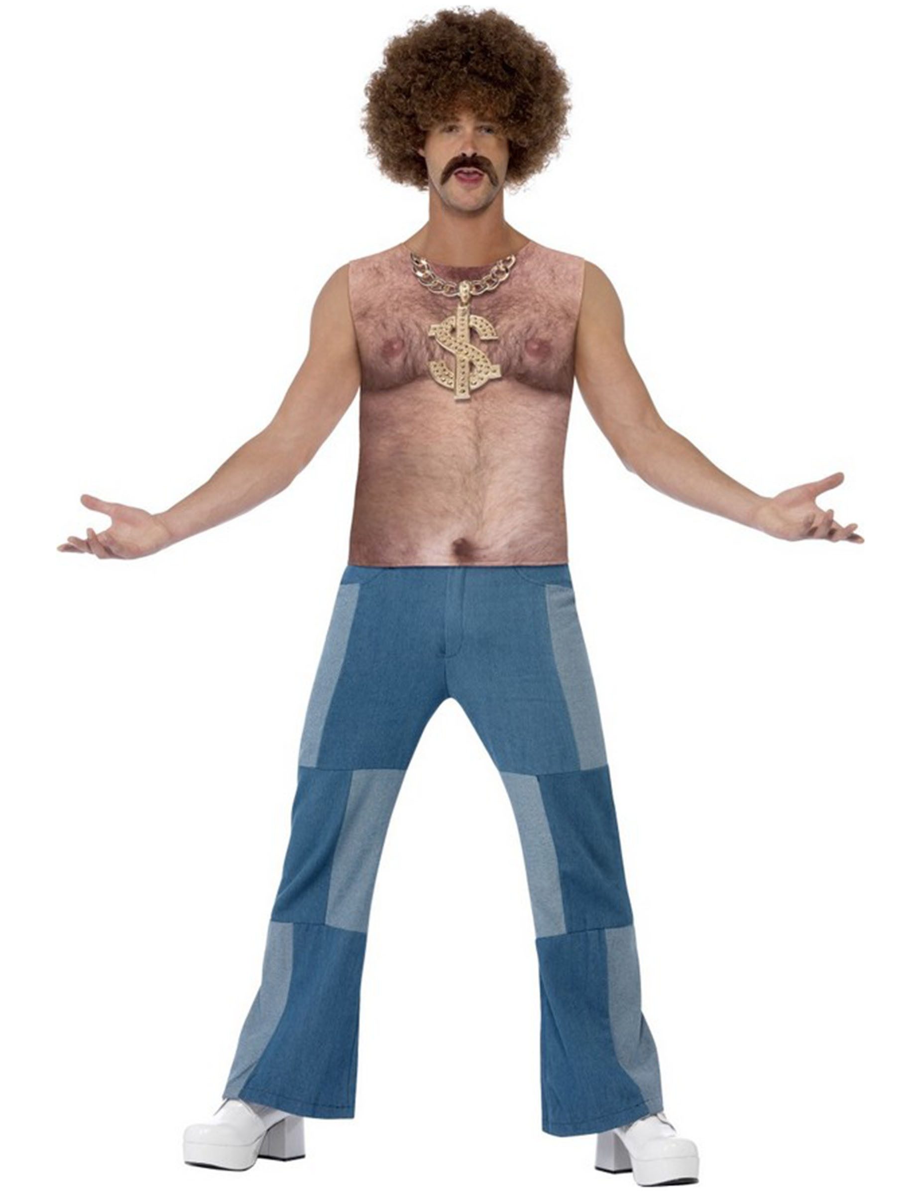 Lieferumfang: 1 Hip Hop T-Shirt mit Brusthaar beige-gold (ohne Perücke, Bart und Hose). Farbe: Beige/Gold. Material: 100% Polyester. Schluss mit gezupften Augenbrauen und gegelten Haaren! Mit diesem verrückten Rapper-Shirt zeigen Sie, was Sie haben (oder auch nicht) und wie ein richtiger Mann aussehen muss! Das ausgefallene Hip Hop-Shirt zeigt einen nackten Oberkörper mit wuchernder Brust- und Bauch-Behaarung, für deren Rasur man schon mit der Heckenschere anrücken müsste! Desweiteren ziert der Aufdruck einer riesigen Dollar-Kette den abgebildeten Oberkörper auf dem Proll-Shirt! Wenn Sie auf der nächsten Faschings- oder Verkleidungsfeier einmal so richtig auffallen möchten, dann ist dieses Proleten-Shirt genau das, was Sie brauchen! Achtung! Nicht für Kinder unter drei Jahren geeignet. Kann Kleinteile enthalten - Erstickungsgefahr.