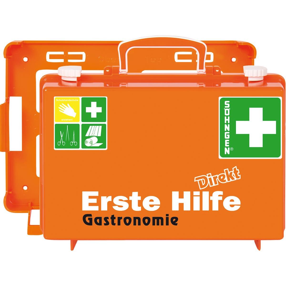Eine klare Lösung für die individuellen Bedürfnisse in Ihrem Betrieb bietet das SÖHNGEN ® Programm Erste Hilfe DIREKT. Die Koffer der Serie Erste Hilfe DIREKT sind Erste-Hilfe-Koffer für kleinere Betriebe und Gruppen aus Verwaltung Handwerk und Dienstleistung. Ausstattung zuzüglich Erste-Hilfe-Material nach berufsspezifischer Risikobewertung. Erste Hilfe DIREKT – einfach einmalig und praktisch. Für stationären Einsatz bei Tätigkeiten im Betrieb und dazu noch mobil einsetzbar – bei Außerhaus-Tätigkeiten einfach mitnehmen. Wandhalterung mit 90° Stopp-Arretierung Drehverschlüsse Tragegriff Gummidichtung Kennzeichnung mit Piktogrammen und Siebdruckbeschriftung. Inhalt: 1 x SÖHNGEN® Beatmungstuch BT-DRY 2 x PE-Druckverschlussbeutel 300 x 400 x 005 mm 1 x SIRIUS® Rettungsdecke 210 x 160 cm 1 x aluderm® Quickverband Finger 1 x aluderm® Quickverband groß 1 x aluderm® Verbandtuch 60 x 80 cm 6 x aluderm® Kompresse einzeln 10 x 10 cm 1 x aluderm® alufinger einzeln 2 x aluderm® Augenkompresse DuOcul 1 x aluderm® Verbandpäckchen DIN klein 3 x aluderm® Verbandpäckchen DIN mittel 1 x aluderm® Verbandpäckchen DIN groß 2 x WS-Fixierbinde 4 m x 6 cm 2 x WS-Fixierbinde 4 m x 8 cm 1 x WS-Universal-Binde 5 m x 8 cm 1 x Vliestücher 200 x 300 mm à 5 Stück 2 x Medizinische Mundschutzmaske EN 14683-2019 IIR einzeln 1 x Netzverband 4 Meter Gr. 3 Arm Bein 1 x SÖHNGEN®-Pore 5 m x 250 cm 1 x aluderm®-aluplast Меню klein 1 x aluderm®-aluplast stabil Fingerverband 18 x 2 cm 10 Stück 1 x aluderm®-aluplast elastisch VBK-Set 12 Stück a 10 x 6 cm 3 x Salvequick-Wundreinigungstücher einzeln 4 x Feuchttuch zur Reinigung unverletzter Haut einzeln 1 x Blasenpflaster á 6 Stück Finger – Zehen 1 x SÖHNGEN®-Silk Pflasterstreifen 12 x 25 cm à 5 Stück 1 x aluderm®-aluplast stabil 5 Stück à 10 x 6 cm 1 x Activ-Set stabil aluderm®- aluplast Меню 1 x Detectables Pflasterset für Erste-Hilfe-Füllung 2 x Dreiecktuch V SO RD 1 x ST-Handgelenk-Stützbandage Grösse 3 - 18-20 cm 1 x Lederfingerling Розмір 5 1 x Handschuh-Set mit 4 Stück Vinyl groß 1010073 1 Kälte-Sofortkompresse klein ab 200 cm² 1 x Erste Hilfe-Kleiderschere 19 cm kniegebogen st-st 1 x Splitterpinzette Feilchenfeld NR 11 cm 1 x Zeckenpinzette aus Kunststoff 1 x oculav NIT® Augenspülung 250 ml Sterillösung 1 x Anleitung Erste-Hilfe SO Sofortmaßnahmen am Unfallort.