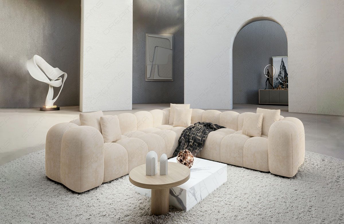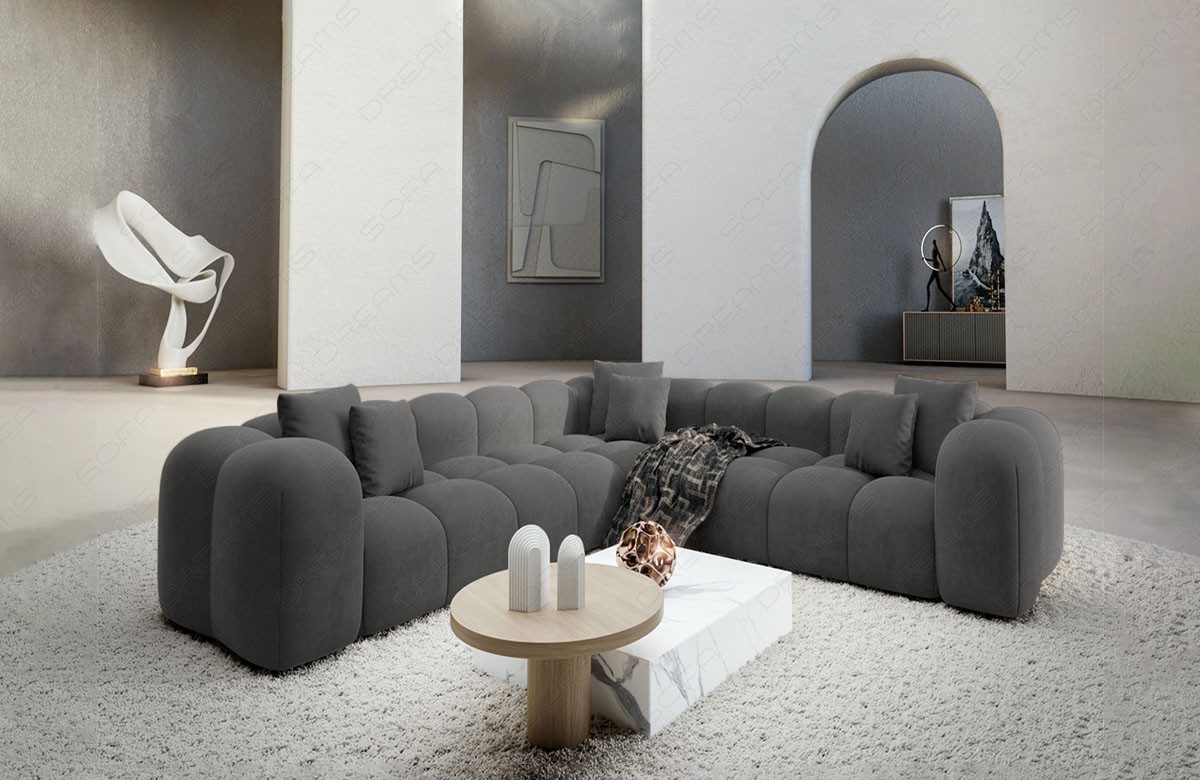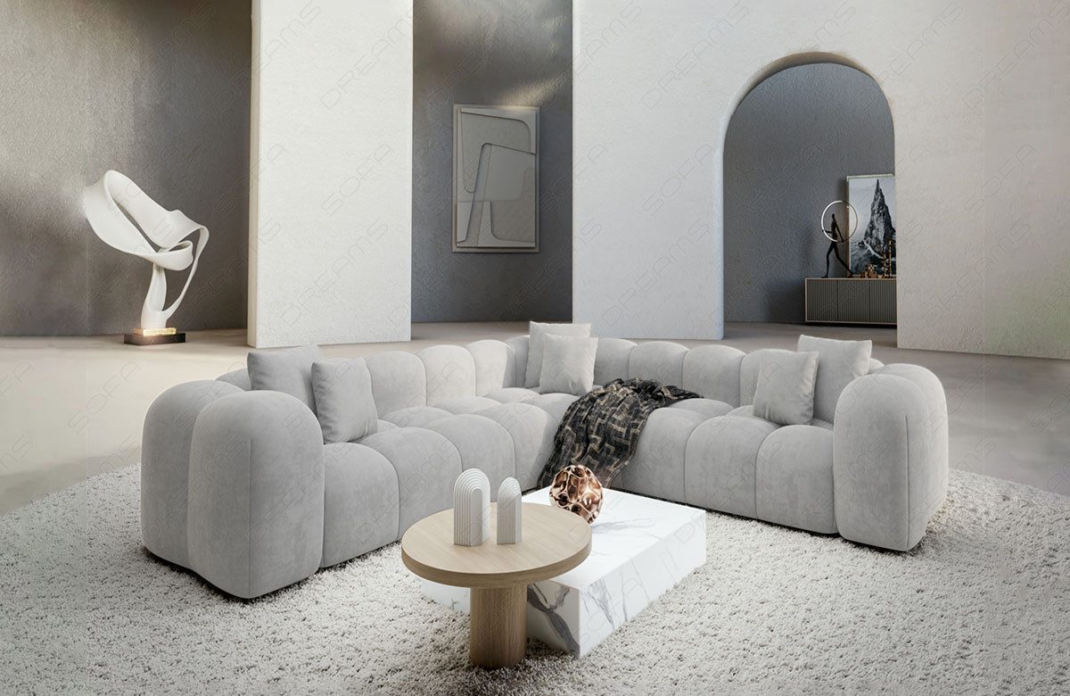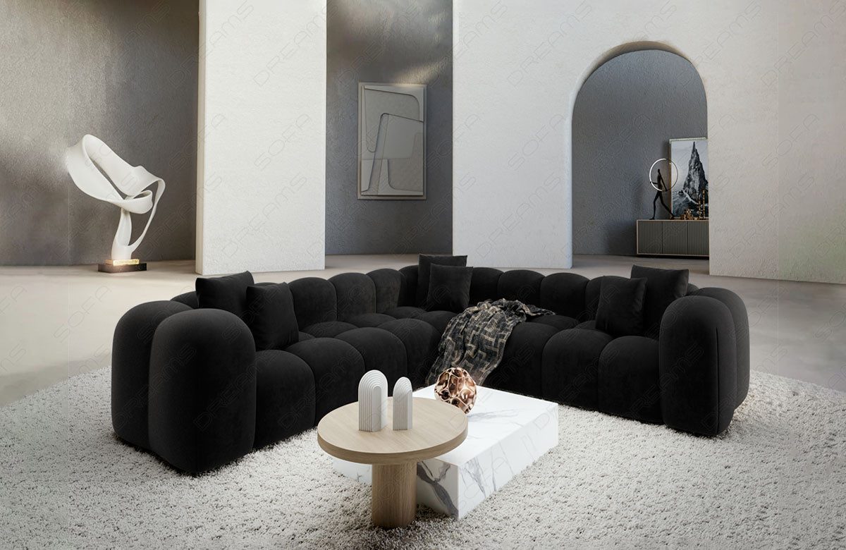 Erleben Sie den Höhepunkt des zeitgemäßen Wohnens mit dem Samtstoff Sofa Formentera in L-Form. Dieses exklusive Möbelstück vereint Eleganz, Komfort und avantgardistisches Design in einem beeindruckenden Ensemble. Der pflegeleichte Samtstoffbezug verleiht dem Sofa nicht nur eine luxuriöse Optik, sondern sorgt auch dafür, dass die Reinigung und Pflege ein Kinderspiel ist. Genießen Sie den luxuriösen Griff des Samtstoffs, der ein angenehmes und behagliches Sitzgefühl schafft. Die L-Form des Sofas bietet nicht nur großzügigen Platz, sondern verleiht Ihrem Wohnraum auch eine moderne Note. Mit zwei gleichgeschenkligen Sitzflächen ermöglicht die Formentera Couch eine flexible Gestaltung und Anpassung an unterschiedliche Raumkonzepte. Tauchen Sie ein in eine Welt des zeitgemäßen Wohnens und lassen Sie sich von der Kombination aus Komfort und Design begeistern. Das Formentera Sofa ist nicht nur ein Möbelstück, sondern ein Statement für individuellen Stil und Ästhetik. Holen Sie sich mit diesem Sofa ein exklusives Highlight in Ihr Zuhause und gestalten Sie Ihren Wohnraum nach Ihren persönlichen Vorstellungen.