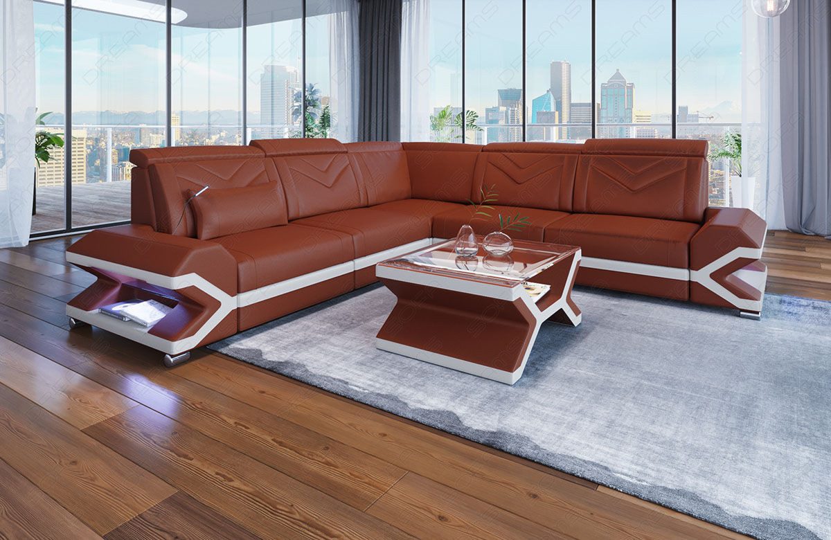 Verleihen Sie Ihrem Wohnzimmer mit dem Sorrento Ecksofa von Sofa Dreams eine elegante und funktionale Note.
