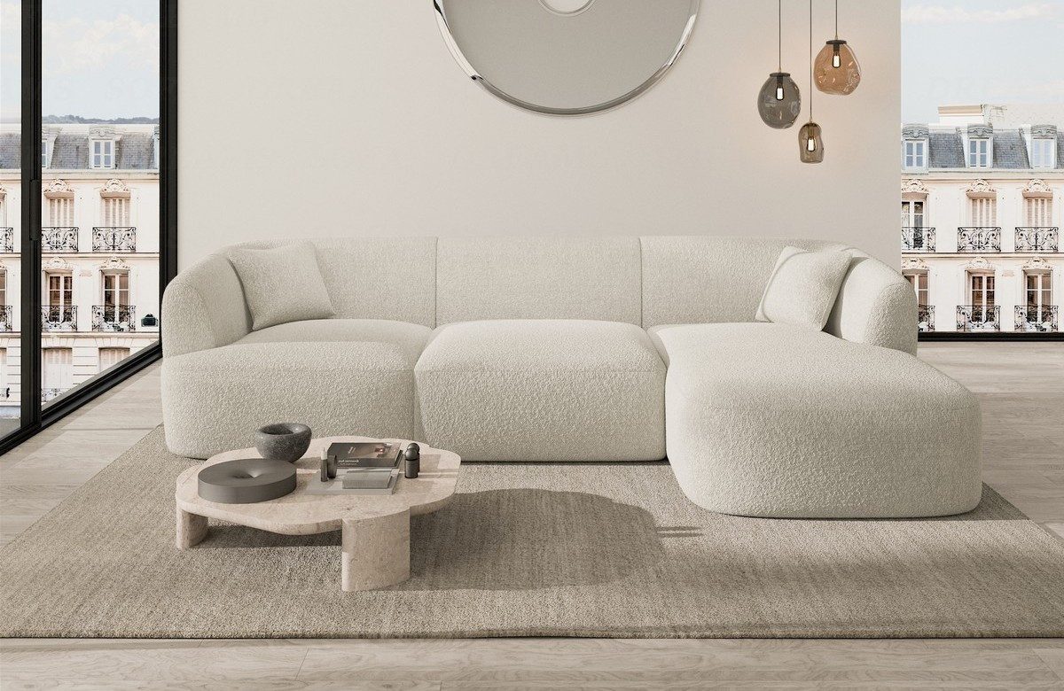Bouclé ist ein Stoff, der durch seine charakteristische Schlingenstruktur oder Schlaufenmuster gekennzeichnet ist. Er besteht aus verschiedenen Fasermaterialien wie Wolle, Baumwolle oder synthetischen Fasern. Bouclé-Bezüge zeichnen sich durch ihre einzigartige Textur aus, die dem Sofa eine interessante und moderne Optik verleiht. Sie sind in der Regel weich und gemütlich. Bouclé kann in verschiedenen Farben und Designs erhältlich sein und verleiht dem Sofa einen zeitgemäßen Look. Geringe optische Abweichungen der gelieferten Ware von der Опис товару