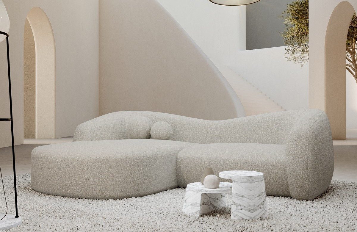 Bouclé ist ein Stoff, der durch seine charakteristische Schlingenstruktur oder Schlaufenmuster gekennzeichnet ist. Er besteht aus verschiedenen Fasermaterialien wie Wolle, Baumwolle oder synthetischen Fasern. Bouclé-Bezüge zeichnen sich durch ihre einzigartige Textur aus, die dem Sofa eine interessante und moderne Optik verleiht. Sie sind in der Regel weich und gemütlich. Bouclé kann in verschiedenen Farben und Designs erhältlich sein und verleiht dem Sofa einen zeitgemäßen Look. Geringe optische Abweichungen der gelieferten Ware von der Опис товару