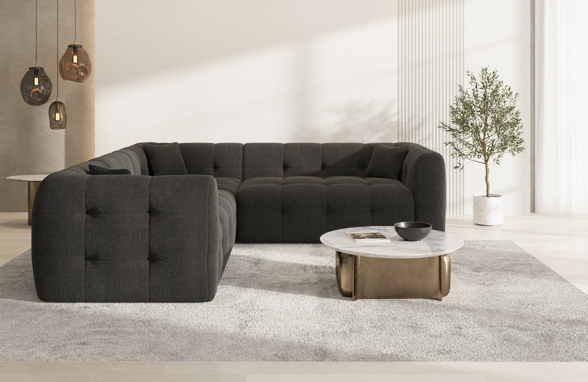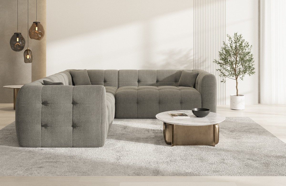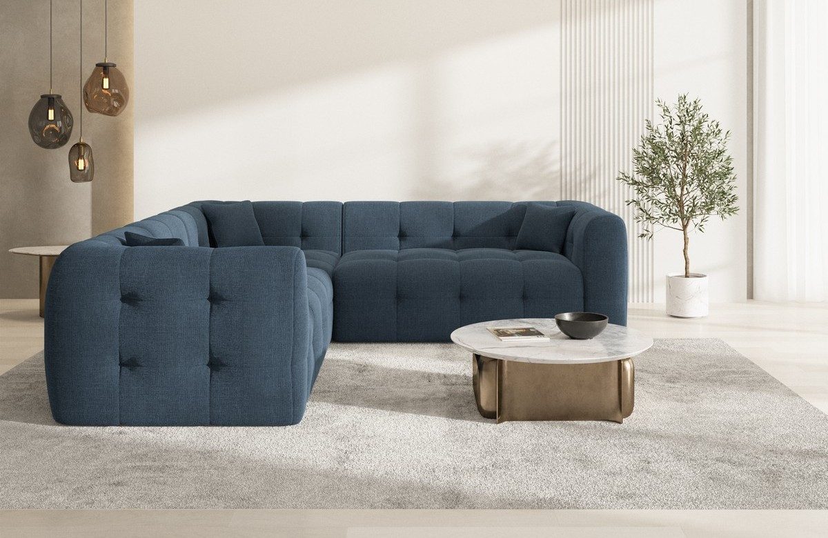 Das Sofa Sevilla L Form ist in drei hochwertigen Bezugsstoffen erhältlich, die jeweils eine besondere Atmosphäre schaffen: