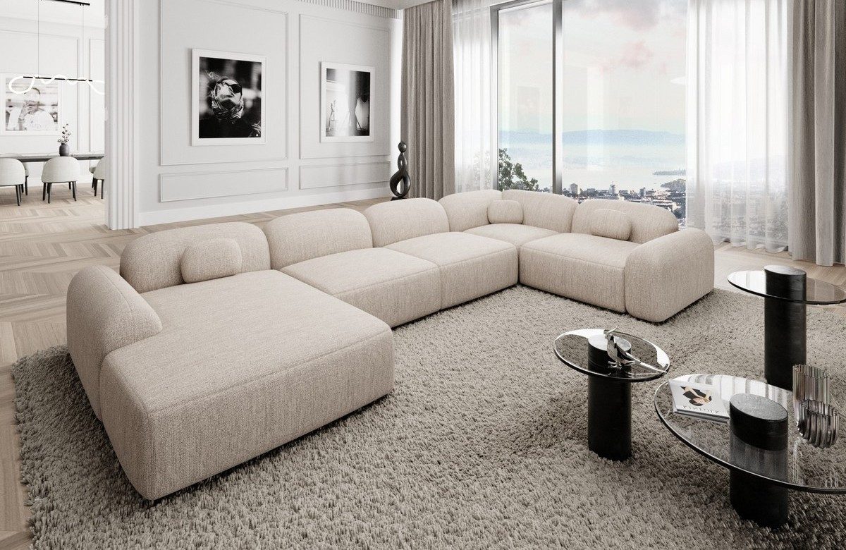 Tauchen Sie ein in die Welt des modernen Wohnens mit der atemberaubenden Wohnlandschaft Barcelona in stilvoller U-Form. Dieses Sofa vereint hochwertiges Design, luxuriösen Komfort und eine Vielfalt an Gestaltungsmöglichkeiten – perfekt für alle, die ihr Wohnzimmer in einen Ort des Wohlfühlens, der Entspannung und des stilvollen Zusammenkommens verwandeln möchten.