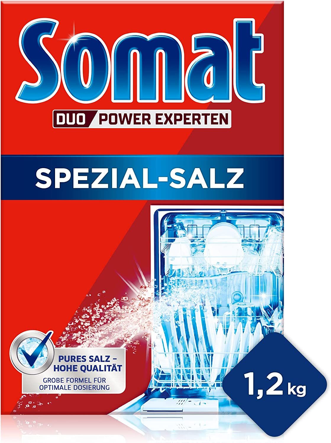 Somat Duo Power Experten Spezial Salz – Für glänzende Ergebnisse und eine langlebige Spülmaschine Leitungswasser enthält Kalk, der Rückstände auf dem Geschirr und in der Geschirrspülmaschine hinterlassen kann. Das Somat Spezial-Salz für Geschirrspüler enthärtet bei der Geschirrreinigung das Wasser, entfernt Kalk und schützt so vor schädlichen Ablagerungen in den Sprüharmen und Leitungen der Maschine. Die Formel ist durch die Verwendung von grobkörnigem Salz, sowie dank der praktischen Öffnung, besonders einfach zu dosieren und verbessert die Leistung von Geschirrspülern nachhaltig. Außerdem wird das Somat Spülmaschinensalz in einem Karton aus 80 % recyceltem Papier geliefert – für eine saubere Welt. Die Produktvorteile im Detail: Macht das Wasser weicher und verhindert Wasserflecken Schützt vor Kalkablagerungen Erhält die Leistung des Geschirrspülers Für jede Spülmaschine geeignet Karton aus 80 % Recyclingpapier Anwendung: Füllen Sie das Somat Spezial-Salz in den Vorratsbehälter. Die Marke Somat Seit über 50 Jahren steht Somat für innovative Produkte rund um Ihre Geschirrspülmaschine. Seit Einführung des ersten Reinigers für automatische Geschirrspülmaschinen im Jahre 1962 in Deutschland haben wir unsere Produkte ständig weiterentwickelt und neue Standards gesetzt. Deshalb können Sie heute und in Zukunft sicher sein, dass Ihr Geschirr stets strahlend sauber und glänzend wird. Somat – seit über vier Jahrzehnten Sauberkeit mit Glanzgarantie.