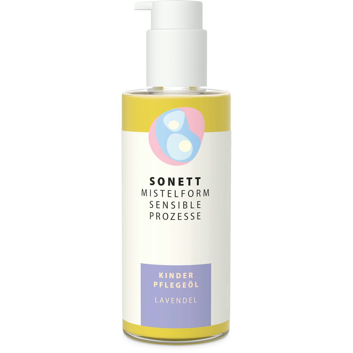 Abends vor dem Schlafengehen entspannt eine sanfte Bauch-, Rücken- oder Fußmassage mit dem Sonett Mistelform Kinder Pflegeöl Lavendel.