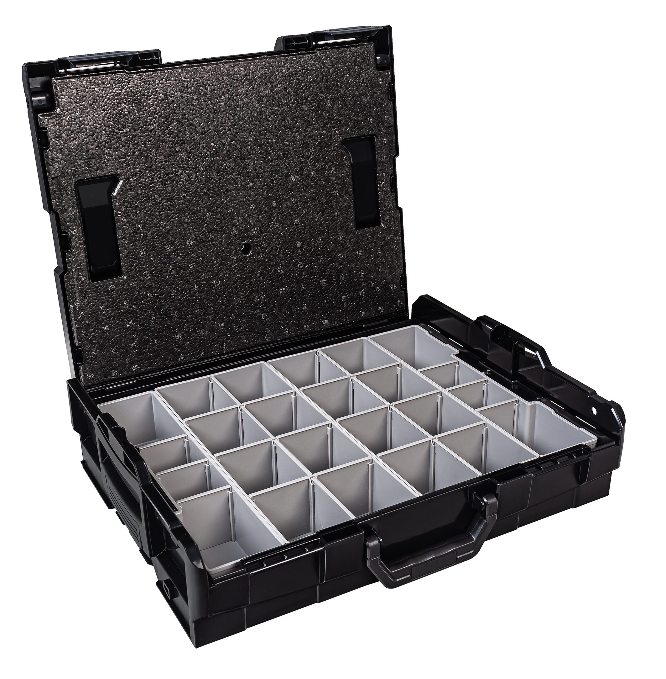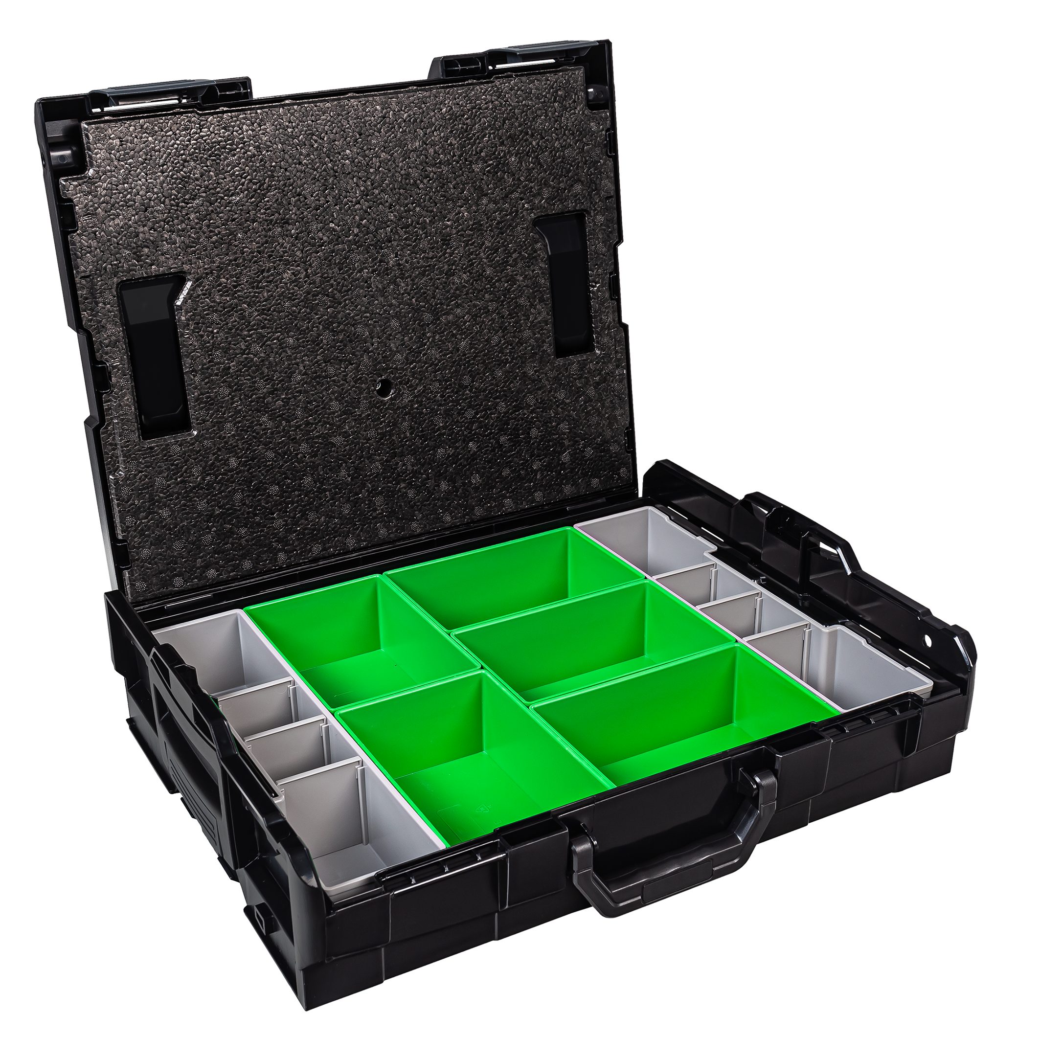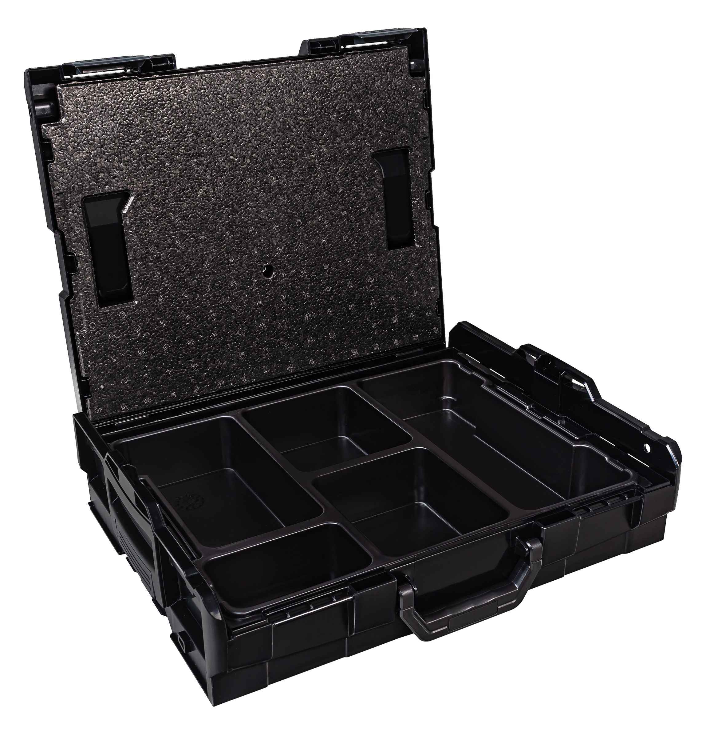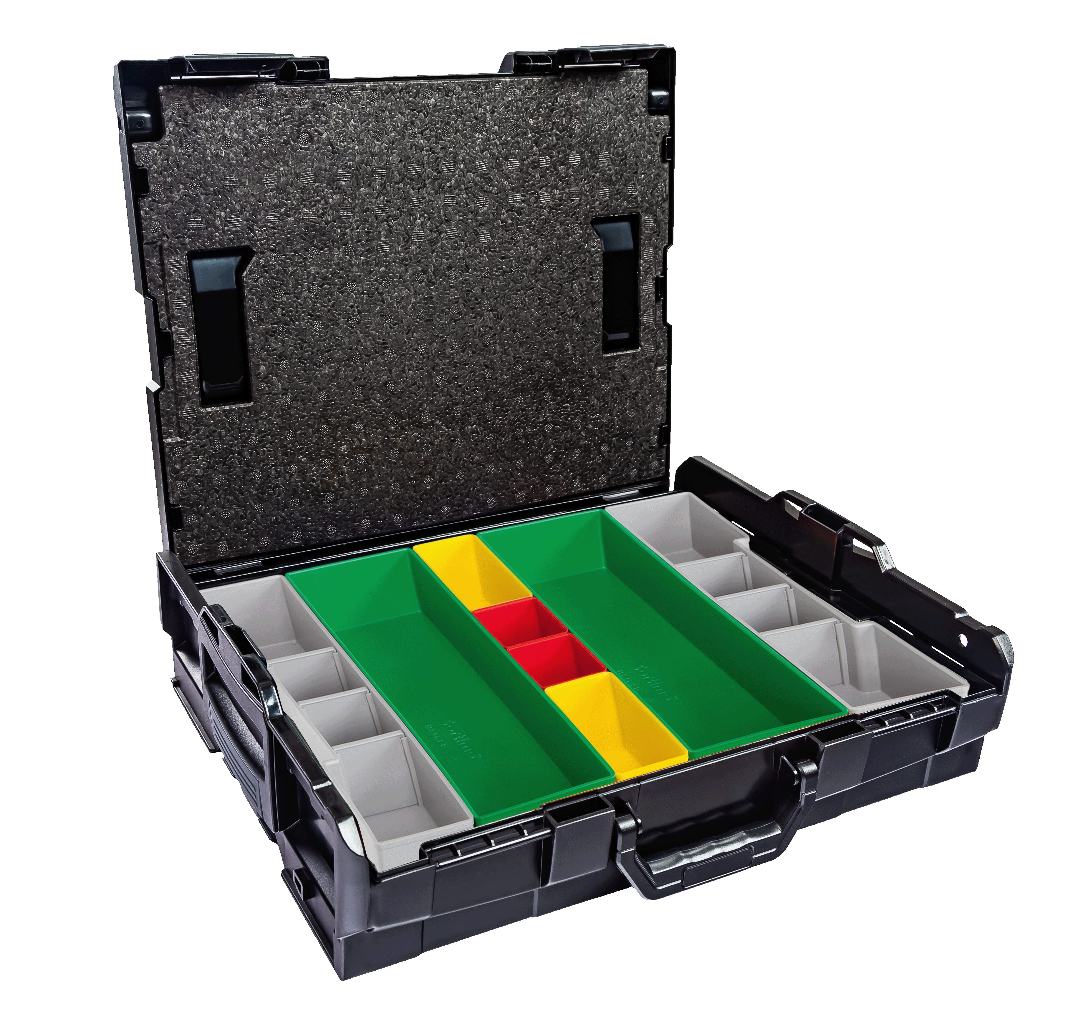 Lieferumfang: 1 x Bosch Sortimo Systemkoffer L-Boxx 102 Schwarz 1 x Deckeleinlage 1 x Insetboxen-Set A3/B3/D3/F3/G3/H3/BC3/CD3/K3/L-Boxx mini OPak/L-Boxx Transprent/5 Mulden/8 Mulden/12 Mulden Technische Daten L-Boxx 102 Außenmaße (BxTxH) 445 x 358 x 118 mm Innenmaße (BxTxH): 378 x 310 x 65 mm Volumen 8.8 Liter Gewicht 2,1 kg Material ABS Maximale Deckelbelastung in kg 100 Professionel: Die Marke L-BOXX steht für weit mehr als nur eine Werkzeugkiste mit verschiedensten Größen und Ausführungen, sie beschreibt eine Produktfamilie mit System-gedanken. L-BOXX ist ein Gemeinschaftsprojekt von Bosch und Sortimo und perfekt auf die Anforderungen des mobilen Arbeitens abgestimmt. Die patentierten Koffersysteme für Werkzeugkoffer und Менюskoffer wurden speziell für die Anforderungen von Profi-Handwerkern entwickelt. L-Boxx Perfekt auf die Anforderungen des mobilen Arbeitens abgestimmt: Ideal für die Aufbewahrung und den Transport von Werkzeugen aller Art, Zubehör, Kleinteilen und Verbrauchsmaterialien. Eben für alles, was der Profi vor Ort braucht. Ordnung und überblick, schon in der Werkstatt. So wird nichts vergessen, was man später auf der Baustelle benötigt. Durch ein breites Zubehörprogramm und modularen Aufbau lassen sich die BOXXen mit maximaler Flexibilitätund nahezu unbegrenzt individuell konfigurieren. Durch die Integration in das Fahrzeugeinrichtungssystem von Sortimo sind die BOXXen schnell, sicher und ordentlich im Fahrzeug verstaut. Und vor Ort ist alles wieder griffbereit und sofort zur Hand. L-Boxx Im System bleiben: WERKZEUGKOFFER SYSTEM: Die Bosch Sortimo L-BOXXen verfügen über ein individuelles Klicksystem, welches den Transport mehrerer Werkzeugkästen gleichzeitig ermöglicht. TüV-GEPRüFT: Всі Werkzeugkoffer der Bosch Sortimo L-BOXX Reihe können einfach und sicher in allen TüV-Geprüften Bosch Sortimo Fahrzeugeinrichtungen transportiert werden. VARIABLE L-BOXX EINLAGEN: Die L-BOXX Werkzeugkoffer verfügen über einen modulierbaren Innenraum. Mit der Adapterwanne können auch Einsätze aus Makpac und Systainer verwendet werden. FLEXIBEL UND KOMPATIBEL: Ein L-BOXX Set kann flexibel mit einem anderen L-BOXX Werkzeug Set kombiniert und weiter ergänzt werden und ist aus schlag- und stoßfesten ABS Kunststoff. PREMIUM QUALITäT: Professioneller Werkzeug Koffer. Ein Werkzeugkoffer der Arbeitsabläufe optimiert und effizientes Arbeiten ermöglicht. L-Boxx Deckeleinlage für Sortimo L-Boxx 102/136/238: Die Deckeleinlage aus EPP Hartschaum ist die perfekte Ergänzung zu Ihrer L-BOXX 102, L-BOXX 136 oder zur L-BOXX 238. Sie schließt die in der BOXX verstauten Insetboxen oder Kleinteileeinsätze nach oben ab und verhindert somit ein Durchmischen der darin befindlichen Inhalte, damit Ihnen nach dem Transport ein zeitraubendes Сортування und Suchen Ihrer Kleinteile erspart bleibt. spart Ihnen Zeit und optimiert einzelne Arbeitsschritte verhindert das Durchmischen der Inhalte schließt Insetboxen oder Kleinteileeinsätze nach oben ab L-Boxx L-Boxx 102 InsetBoxen Set: L-Boxx 102 InsetBoxen Set A3/B3/D3/F3/G3/H3/BC3/CD3/L-Boxx mini Opak/L-Boxx Transparent/5 Mulden/ 8 Mulden/ 12 Mulden