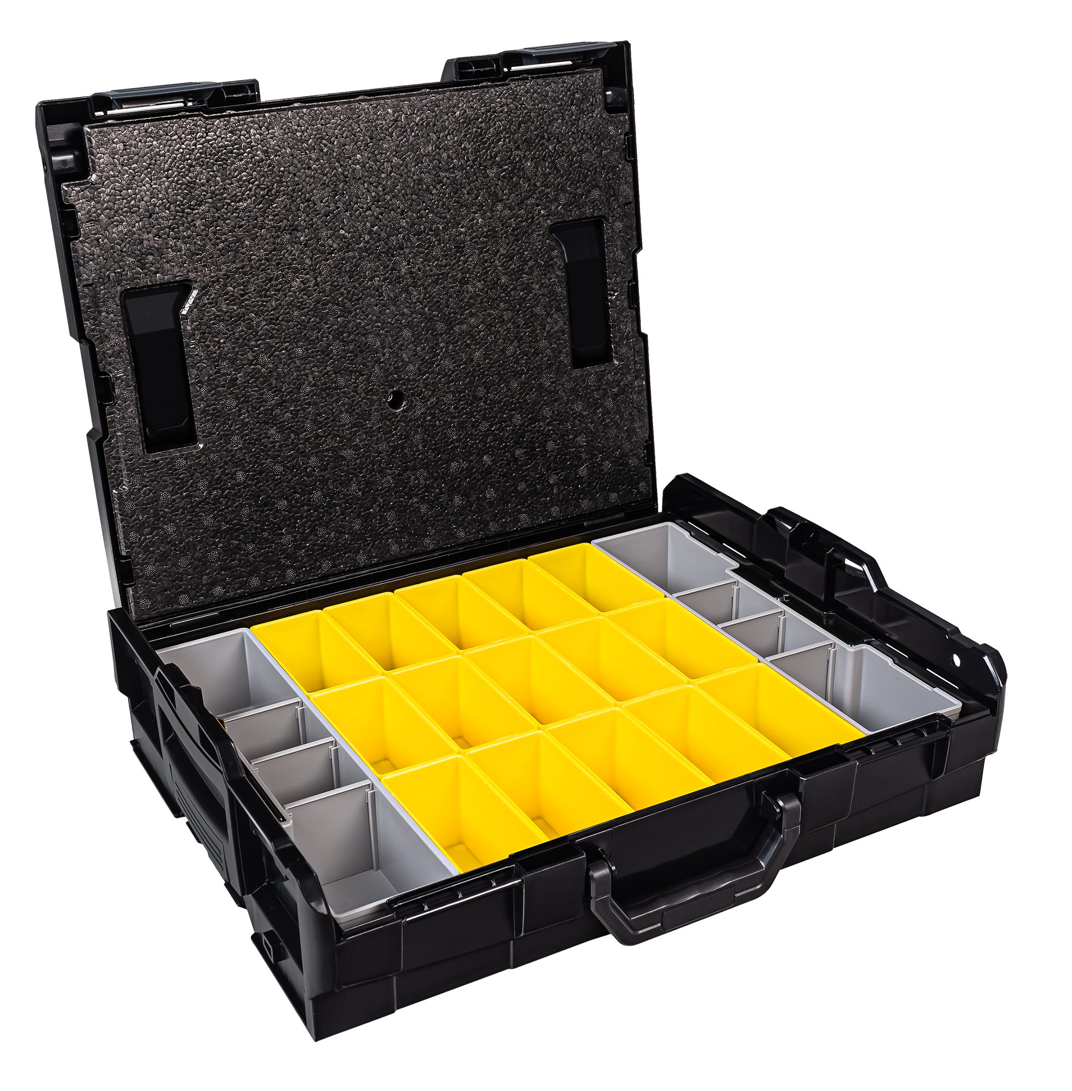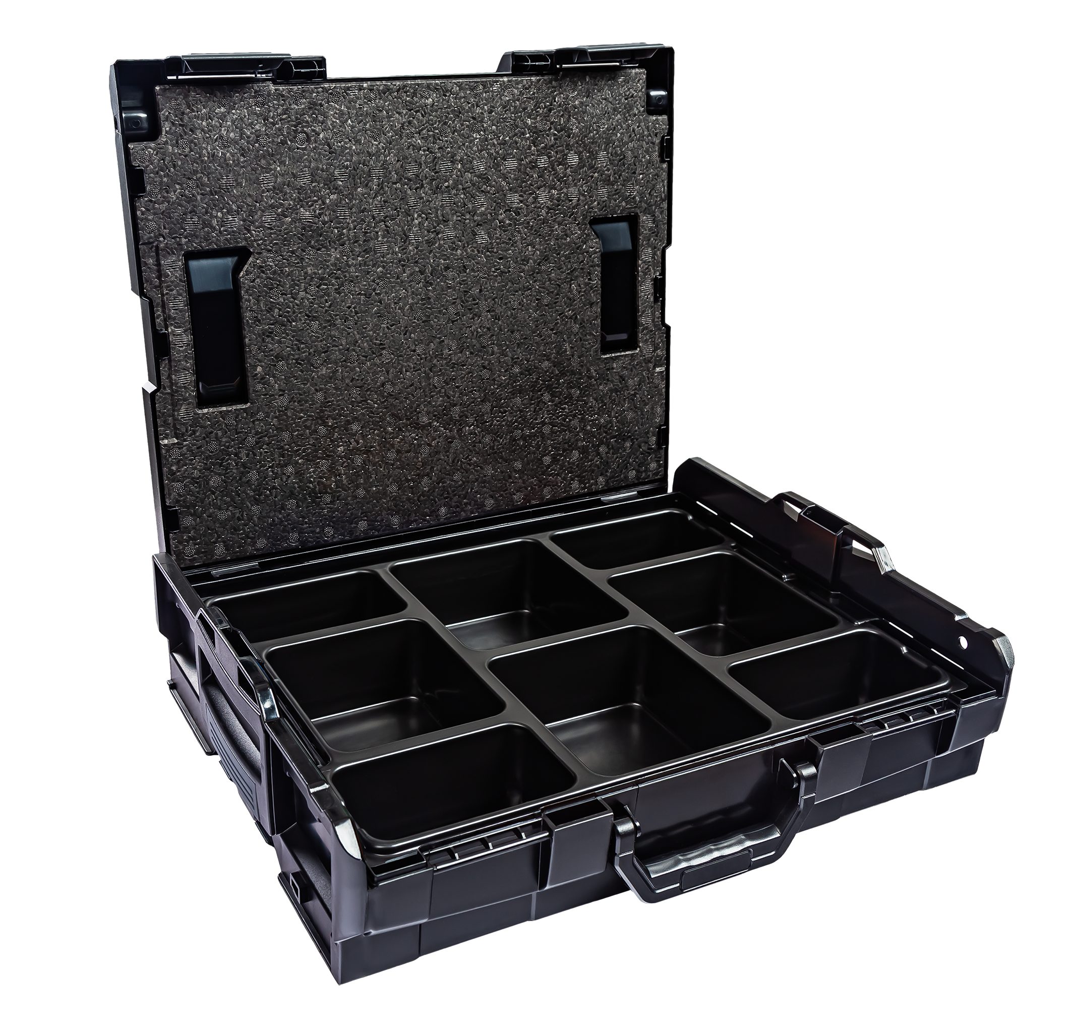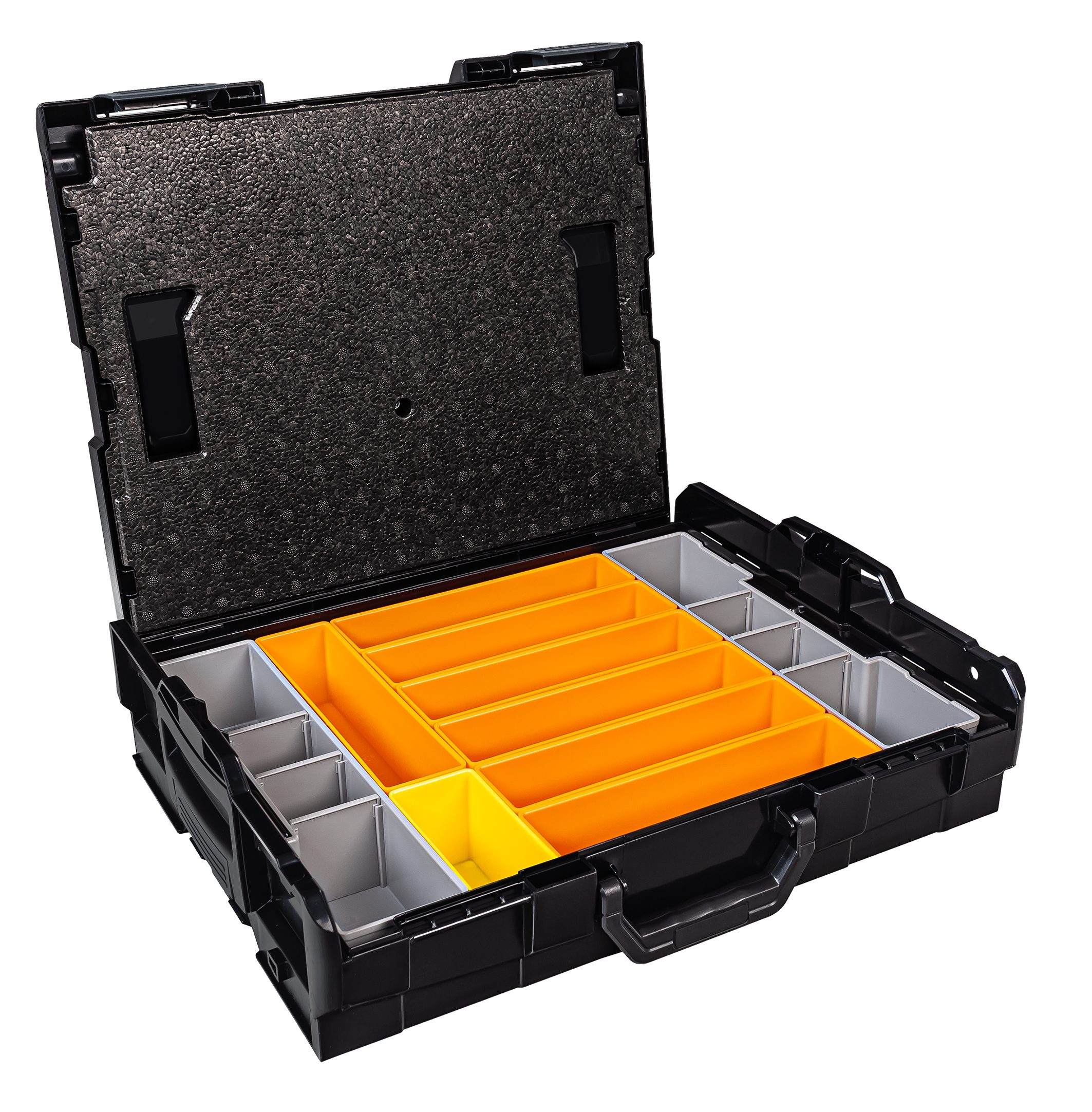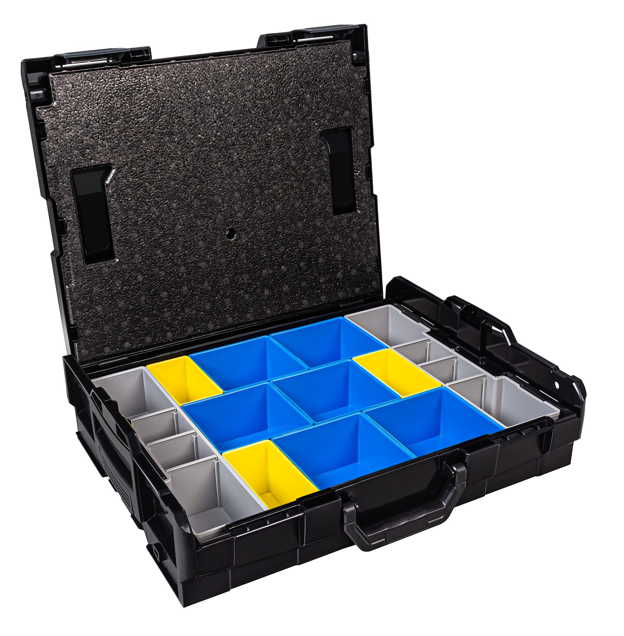 Lieferumfang: 1 x Bosch Sortimo Systemkoffer L-Boxx 102 Schwarz 1 x Deckeleinlage 1 x Insetboxen-Set A3/B3/D3/F3/G3/H3/BC3/CD3/K3/L-Boxx mini OPak/L-Boxx Transprent/5 Mulden/8 Mulden/12 Mulden Technische Daten L-Boxx 102 Außenmaße (BxTxH) 445 x 358 x 118 mm Innenmaße (BxTxH): 378 x 310 x 65 mm Volumen 8.8 Liter Gewicht 2,1 kg Material ABS Maximale Deckelbelastung in kg 100 Professionel: Die Marke L-BOXX steht für weit mehr als nur eine Werkzeugkiste mit verschiedensten Größen und Ausführungen, sie beschreibt eine Produktfamilie mit System-gedanken. L-BOXX ist ein Gemeinschaftsprojekt von Bosch und Sortimo und perfekt auf die Anforderungen des mobilen Arbeitens abgestimmt. Die patentierten Koffersysteme für Werkzeugkoffer und Менюskoffer wurden speziell für die Anforderungen von Profi-Handwerkern entwickelt. L-Boxx Perfekt auf die Anforderungen des mobilen Arbeitens abgestimmt: Ideal für die Aufbewahrung und den Transport von Werkzeugen aller Art, Zubehör, Kleinteilen und Verbrauchsmaterialien. Eben für alles, was der Profi vor Ort braucht. Ordnung und überblick, schon in der Werkstatt. So wird nichts vergessen, was man später auf der Baustelle benötigt. Durch ein breites Zubehörprogramm und modularen Aufbau lassen sich die BOXXen mit maximaler Flexibilitätund nahezu unbegrenzt individuell konfigurieren. Durch die Integration in das Fahrzeugeinrichtungssystem von Sortimo sind die BOXXen schnell, sicher und ordentlich im Fahrzeug verstaut. Und vor Ort ist alles wieder griffbereit und sofort zur Hand. L-Boxx Im System bleiben: WERKZEUGKOFFER SYSTEM: Die Bosch Sortimo L-BOXXen verfügen über ein individuelles Klicksystem, welches den Transport mehrerer Werkzeugkästen gleichzeitig ermöglicht. TüV-GEPRüFT: Всі Werkzeugkoffer der Bosch Sortimo L-BOXX Reihe können einfach und sicher in allen TüV-Geprüften Bosch Sortimo Fahrzeugeinrichtungen transportiert werden. VARIABLE L-BOXX EINLAGEN: Die L-BOXX Werkzeugkoffer verfügen über einen modulierbaren Innenraum. Mit der Adapterwanne können auch Einsätze aus Makpac und Systainer verwendet werden. FLEXIBEL UND KOMPATIBEL: Ein L-BOXX Set kann flexibel mit einem anderen L-BOXX Werkzeug Set kombiniert und weiter ergänzt werden und ist aus schlag- und stoßfesten ABS Kunststoff. PREMIUM QUALITäT: Professioneller Werkzeug Koffer. Ein Werkzeugkoffer der Arbeitsabläufe optimiert und effizientes Arbeiten ermöglicht. L-Boxx Deckeleinlage für Sortimo L-Boxx 102/136/238: Die Deckeleinlage aus EPP Hartschaum ist die perfekte Ergänzung zu Ihrer L-BOXX 102, L-BOXX 136 oder zur L-BOXX 238. Sie schließt die in der BOXX verstauten Insetboxen oder Kleinteileeinsätze nach oben ab und verhindert somit ein Durchmischen der darin befindlichen Inhalte, damit Ihnen nach dem Transport ein zeitraubendes Сортування und Suchen Ihrer Kleinteile erspart bleibt. spart Ihnen Zeit und optimiert einzelne Arbeitsschritte verhindert das Durchmischen der Inhalte schließt Insetboxen oder Kleinteileeinsätze nach oben ab L-Boxx L-Boxx 102 InsetBoxen Set: L-Boxx 102 InsetBoxen Set A3/B3/D3/F3/G3/H3/BC3/CD3/L-Boxx mini Opak/L-Boxx Transparent/5 Mulden/ 8 Mulden/ 12 Mulden