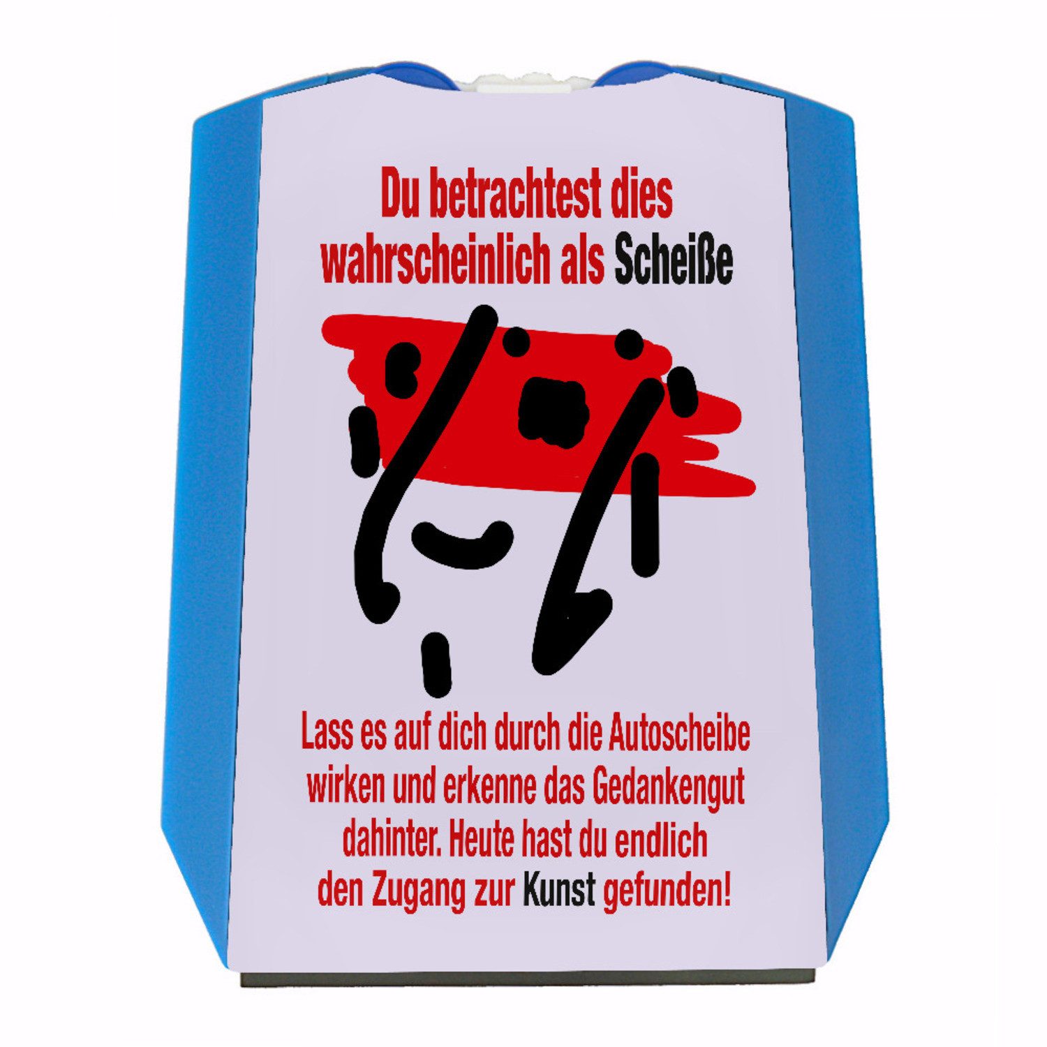 Sind Sie auf der Suche nach einer Parkscheibe, die nicht nur funktional, sondern auch ein echter Hingucker ist? Dann haben wir genau das Richtige für Sie! Diese Parkscheibe mit dem frechen Spruch 'Du betrachtest dies wahrscheinlich als Scheiße. Lass es auf dich durch die Autoscheibe wirken und erkenne das Gedankengut dahinter. Heute hast du endlich den Zugang zur Kunst gefunden!' bringt eine unvergleichliche Mischung aus Humor und Kunst in Ihren Alltag. Sie ist besonders geeignet für alle, die einen ausgefallenen Sinn für Humor haben und denen gewöhnliche Parkscheiben einfach zu langweilig sind. Aber diese Parkscheibe ist mehr als nur ein Lacher – sie ist ein Statement. Mit ihrem malerisch abstrakt umgesetzten Kopf hebt sie sich von der Masse ab und erinnert uns daran, dass selbst etwas so Alltägliches wie das Parken ein kleines Kunstwerk sein kann. Nutzen Sie die Parkscheibe nicht nur, um Ihre Parkzeit zu dokumentieren, sondern auch als Gesprächsstarter. Wer hätte gedacht, dass eine einfache Parkscheibe eine solche Diskussion über Kunst und Gedankengut anregen könnte? Perfekt für Autofahrer, die gerne Neues ausprobieren und das Besondere im Alltäglichen suchen. Suchen Sie ein originelles Geschenk für einen Freund oder ein Familienmitglied, das gerne Auto fährt und sich für Kunst interessiert? Diese Parkscheibe ist das ideale Geschenk! Sie kombiniert Humor und Individualität und passt hervorragend zu jedem Anlass. Ob zum Geburtstag, als kleines Dankeschön oder einfach nur so – mit dieser Parkscheibe schenken Sie nicht nur ein praktisches, sondern auch ein inspirierendes und unterhaltsames Accessoire für das Auto. Sorgen Sie dafür, dass Ihre Liebsten bei ihrer nächsten Fahrt ein Lächeln auf den Lippen haben!