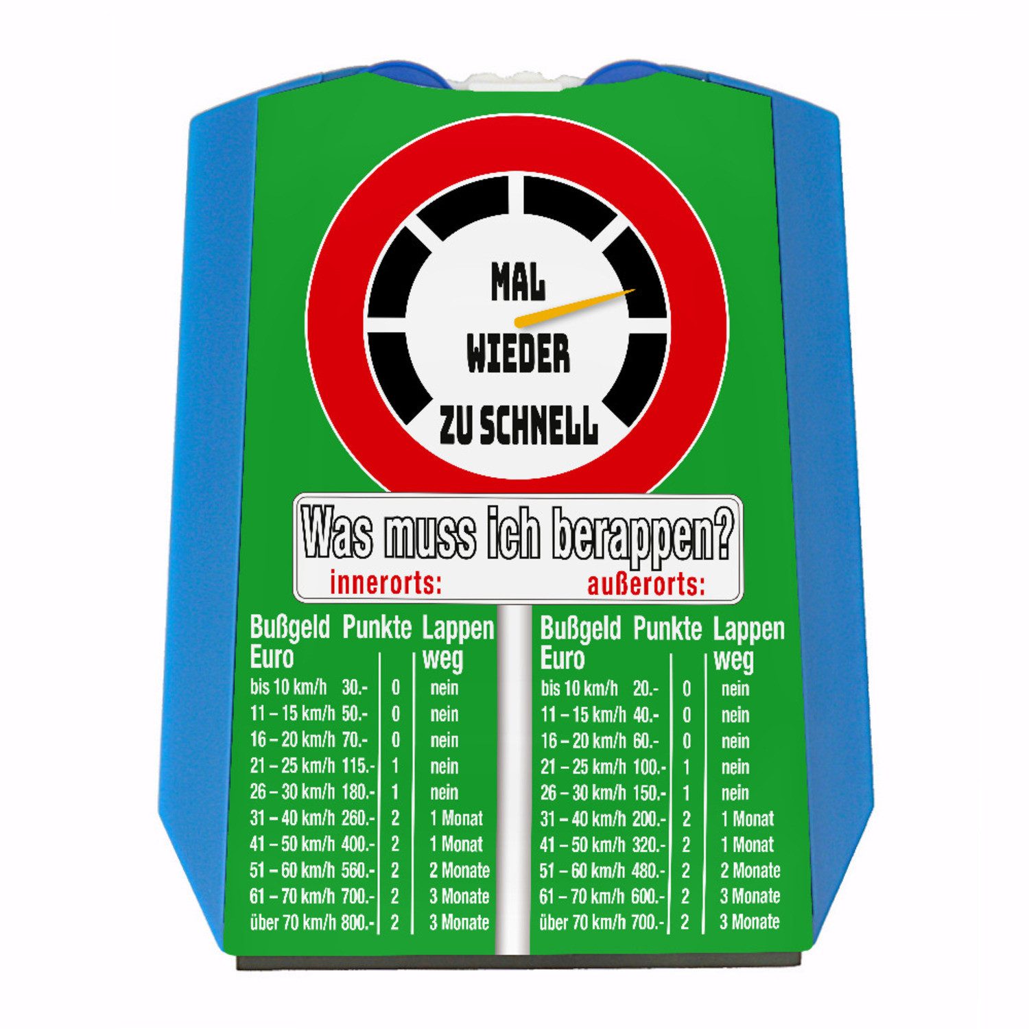 • Lieferumfang: 1x Zu schnell gefahren Bußgeld Parkscheibe in grün mit Straßenschild Motiv