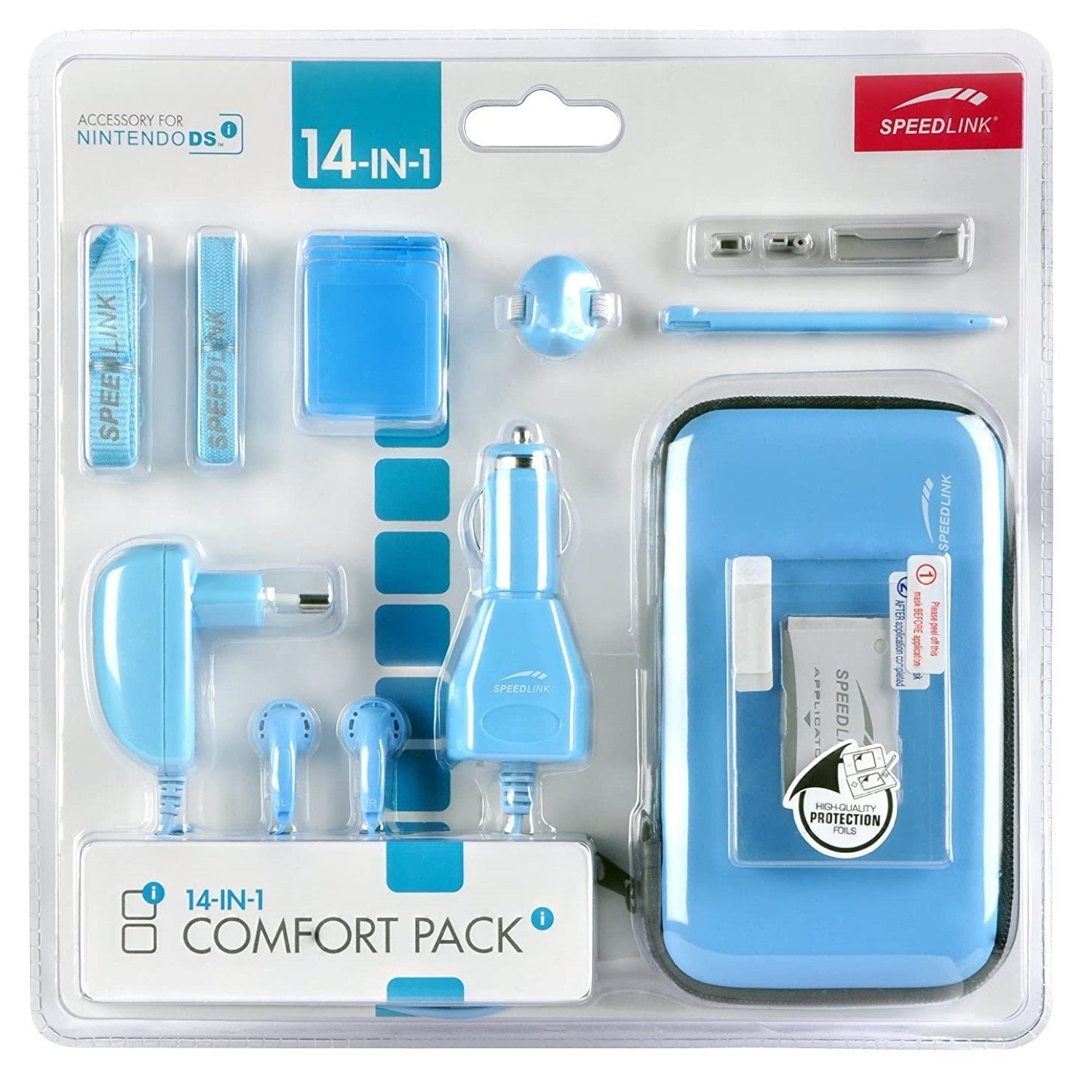 Neben Akku-Ladegeräten für Steckdose und Auto, bietet es in Form von Carry Case und Spielehüllen sichere Aufbewahrungsmöglichkeiten für den Nintendo sowie für drei Spiele.