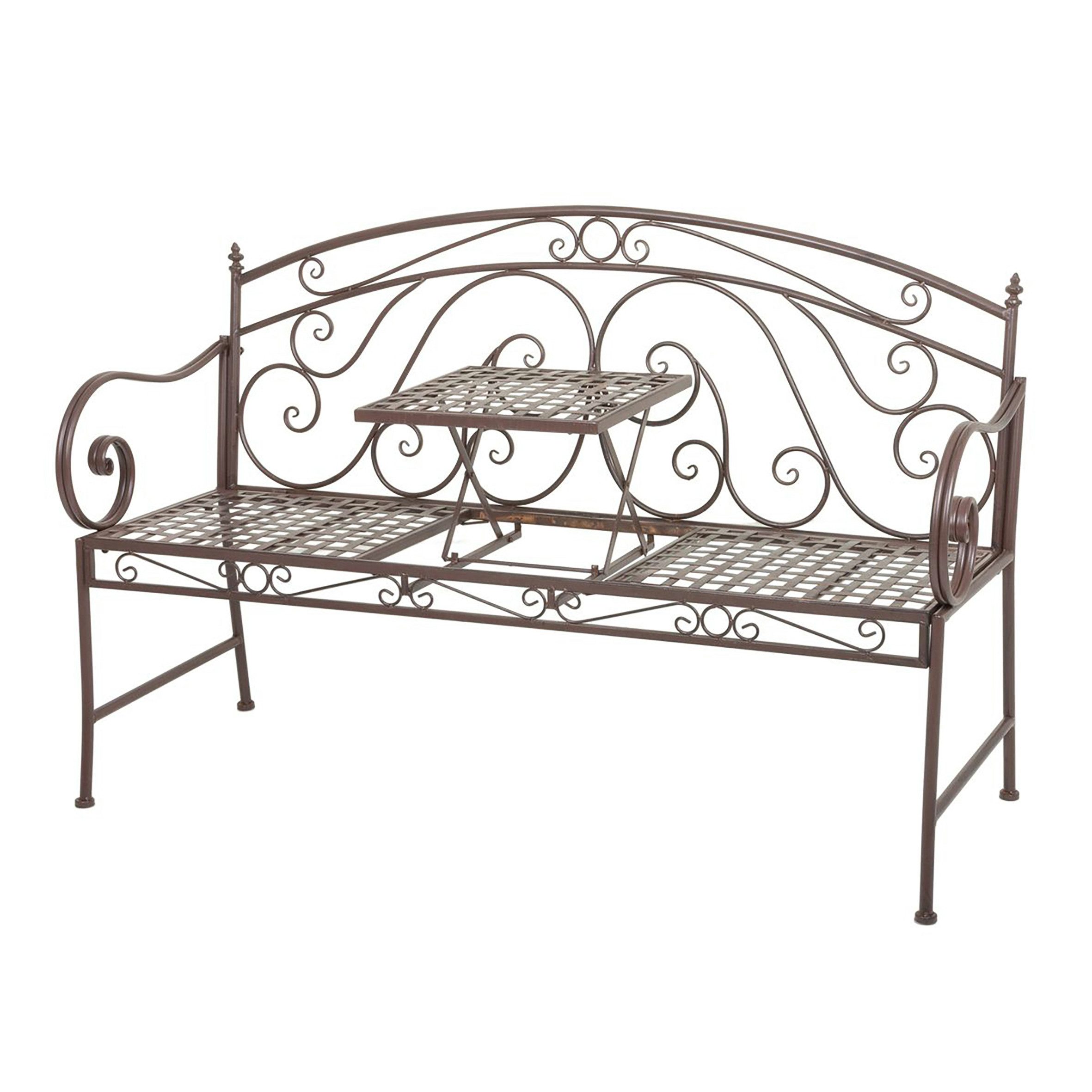 Metall Gartenbank mit ausklappbarem Tisch im antiken Design