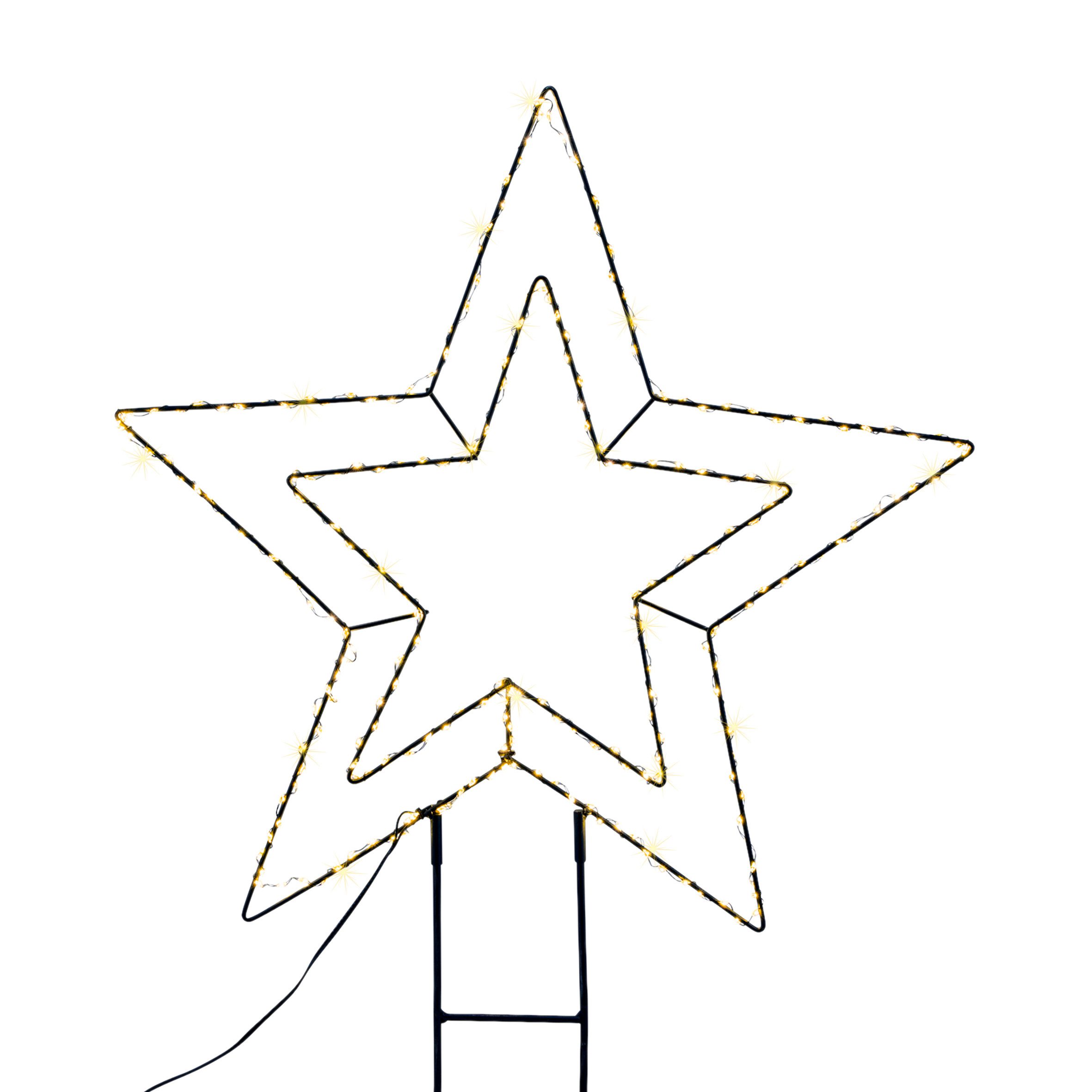 Stern Silhouette Schattenbild Gartenstecker aus Metall in schwarz mit 240 LED mit Timer und Dimmer