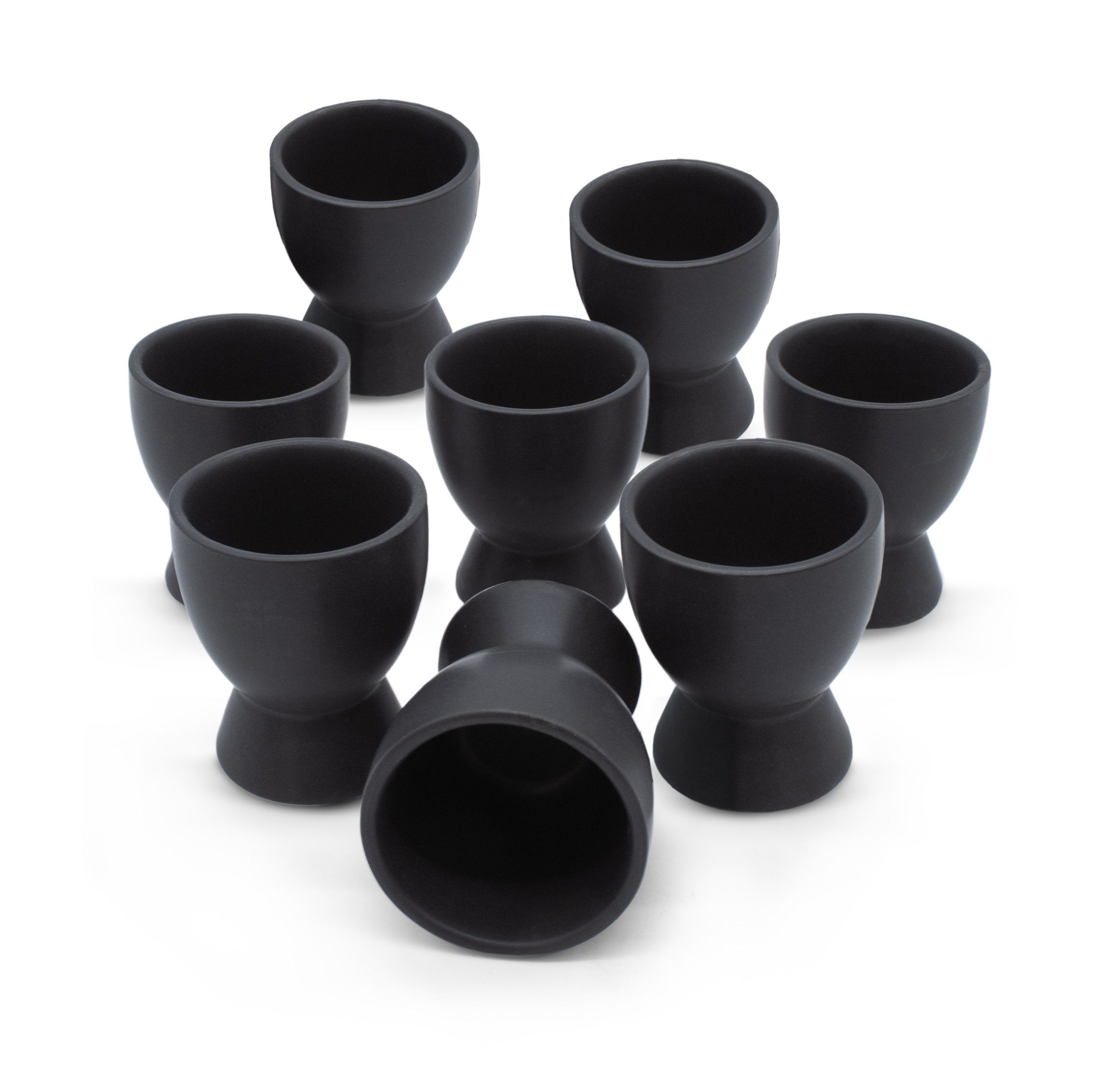 Feinkeramik Eierbecher schwarz matt - 8er Set - Eierhalter in klassischer Form