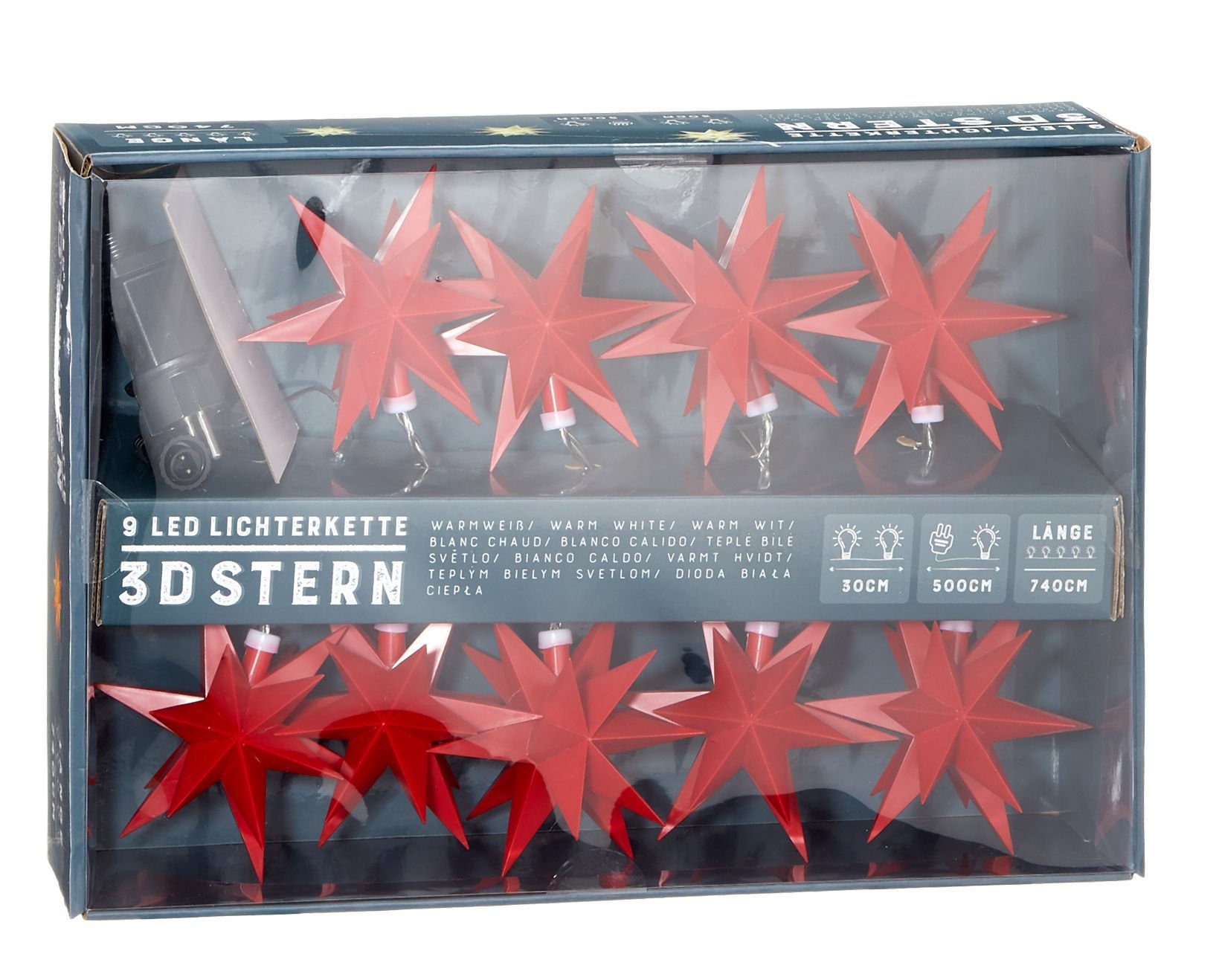 LED 3D Stern Lichterkette 240 cm - rot - Deko Lichterkette mit 9 beleuchteten Sternen