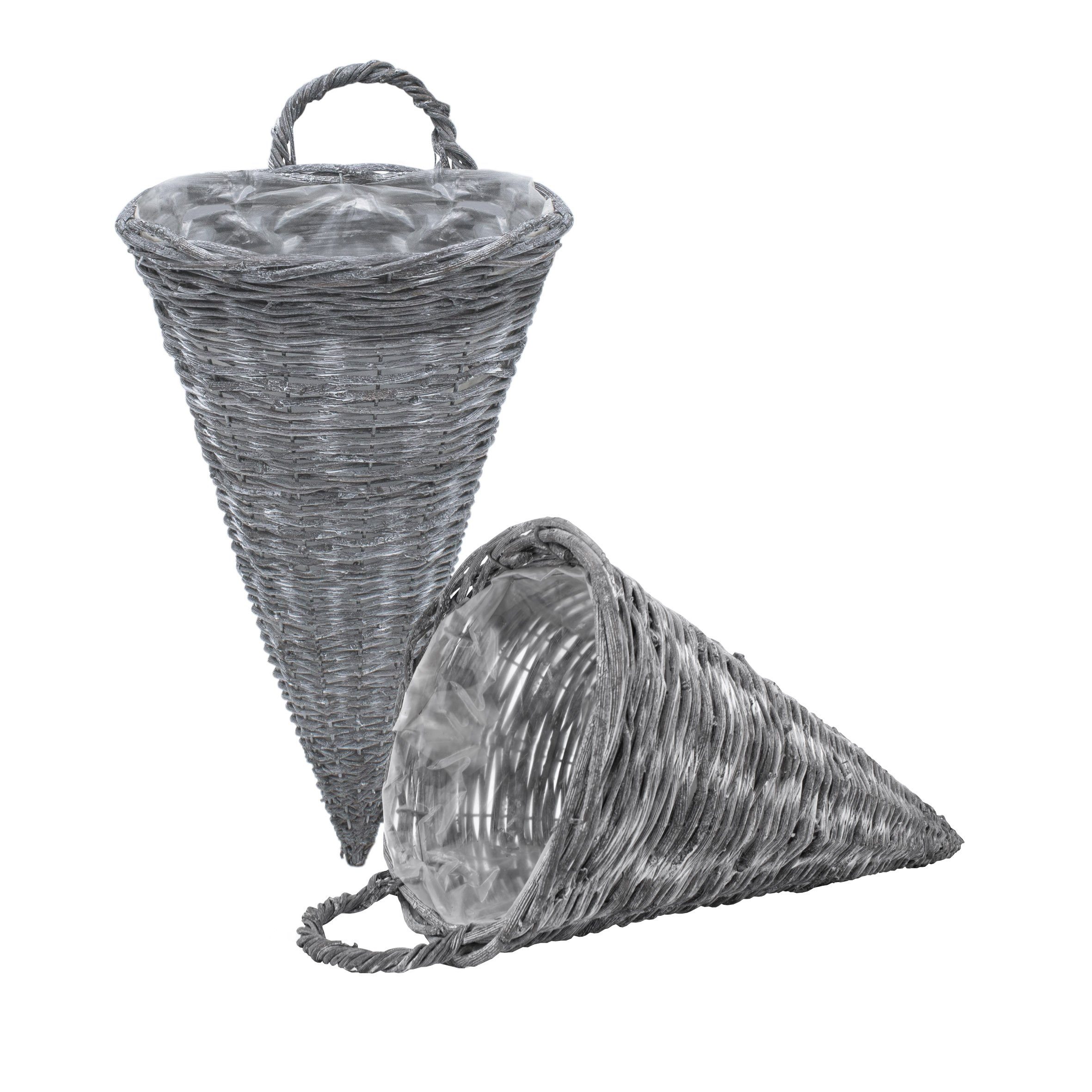 Wand Blumenampel 41 x 24 cm shabby grau - 2er Set - Rattan Hänge Pflanzkorb für Innen und Außen