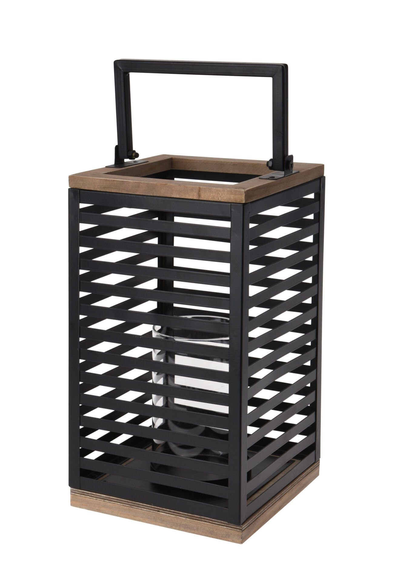 Modern gestaltete Metall Laterne in ca. 28 cm Höhe mit Holz Elementen und Kerzenglas