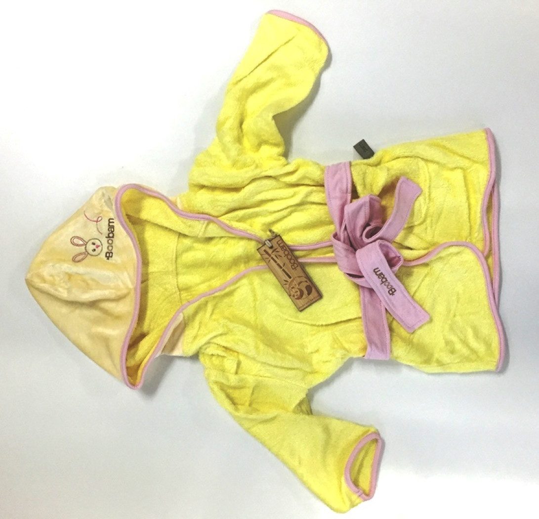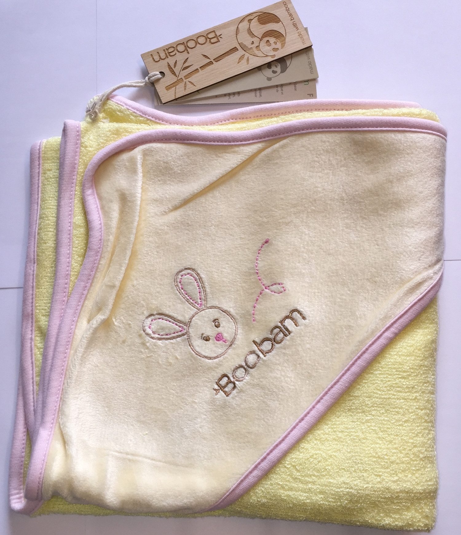 Boobam Bambus Kapuzenhandtuch oder Bademantel mit Kapuze. Die Bamboo-Artikel sind mit einem süßen Muster bestickt. Für Kinder. Antibakteriell- für Всіrgiker geeignet ohne chemische Zusätze. Bambusfaser hat eine natürliche antibakterielle Funktion. Sehr weich - die Bambus Faser ist weicher als Baumwolle! Bambusstoff wird aus der Bambuspflanze hergestellt die in einer ökologisch ausgewogenen Region wächst. Розмір Kapuzenhandtuch: 75cm. Розмір Bademantel: Довжина ohne Kapuze ca. 50cm, Breite Taille: 35cm (nur von vorne gemessen und Stoff lappt da schon ca. 8cm über). Breite Taille gesamt ca. 85cm Bambus ? der Stoff der Zukunft Es gibt mehr als 1000 Bambus-Arten auf der Welt. Einige Bambus-Arten eignen sich aufgrund der Struktur der Fasern für die Gewinnung von Stoffen. Diese Wärme liebende Pflanze wächst im Süden Chinas auf kargen Böden, die sonst brach lägen. So gedeihen dort ganze Wälder und wirken dem Treibhauseffekt entgegen. Als schnell wachsende Pflanze zählt Bambus mit zu den effektivsten erneuerbaren Rohstoffen dieser Welt. Die Bambus-Pflanzen werden in einem zeitaufwendigen Verfahren unter Verwendung von viel Wasser zerfasert. Da keine Chemikalienzugesetzt werden, bleibt das Wasser unbelastet und kann nach einfacher Filterung wiederverwendet werden. Die daraus entstandene unbelastete Wolle bildet den Ausgangsstoff für unterschiedliche Fäden und Garne, aus denen hautverträgliche Stoffe produziert werden. Während des Wachstumsprozesses ist die Bambuspflanze resistent gegen Würmer, Motten und Bakterien. Ein Beispiel für den starken Selbstschutz der Natur. Wissenschaftler haben herausgefunden, dass Bambus einen einzigartigen Schutz gegen Bakterien hat, der ?Bambus Kun? genannt wird. Dieser Schutz hat besondere und natürliche Funktionen, die den Bambusstoff antibakteriell und schweißaufnehmend machen. Dieser Schutz wird bei der Produktion des Bambusstoffes nicht verändert und erhält die antibakterielle Wirkung. Selbst nach 50fachem Waschen besitzt die Bambusfaser noch die hervorragende Funktion zur Bekämpfung von Bakterien. Die Bambusfaser ist eine Hohlfaser. Im Querschnitt dieser Faser befinden sich eine Vielzahl von Lücken und Löchern, was eine hervorragende Feuchtigkeitsaufnahme und Atmungsfähigkeit bewirkt. Die Bambus Faser ist weicher als die weichste Baumwolle, hat einen natürlichen Oberflächenglanz und fühlt sich wie Seide, Kaschmir oder Mikrofaser an.