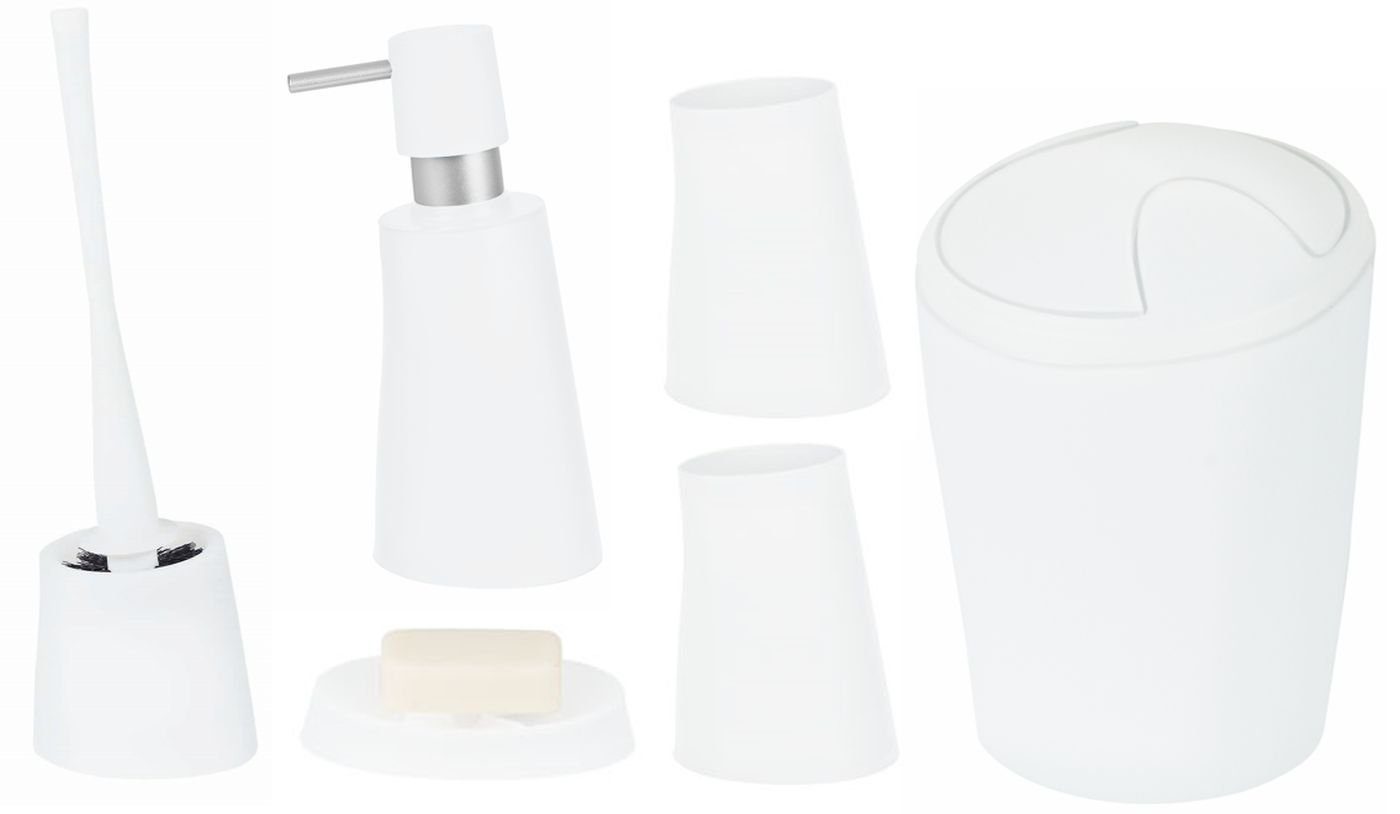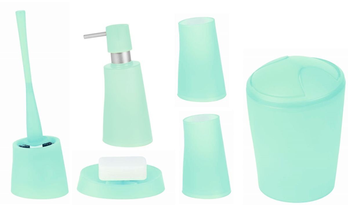 Set beinhaltet | Kosmetikeimer, WC-Bürste, Seifenspender, 2x Zahnputzbecher, Seifenschale |