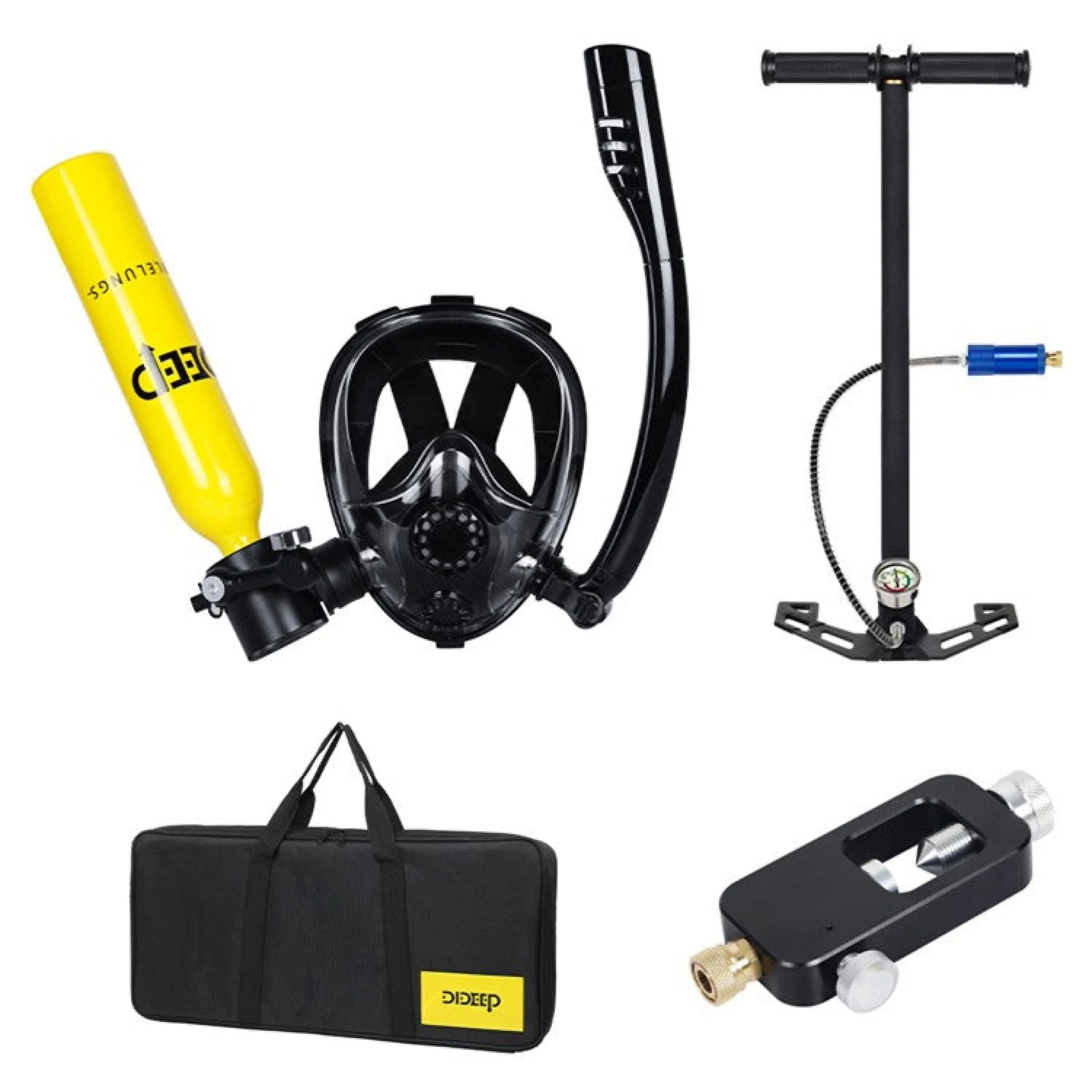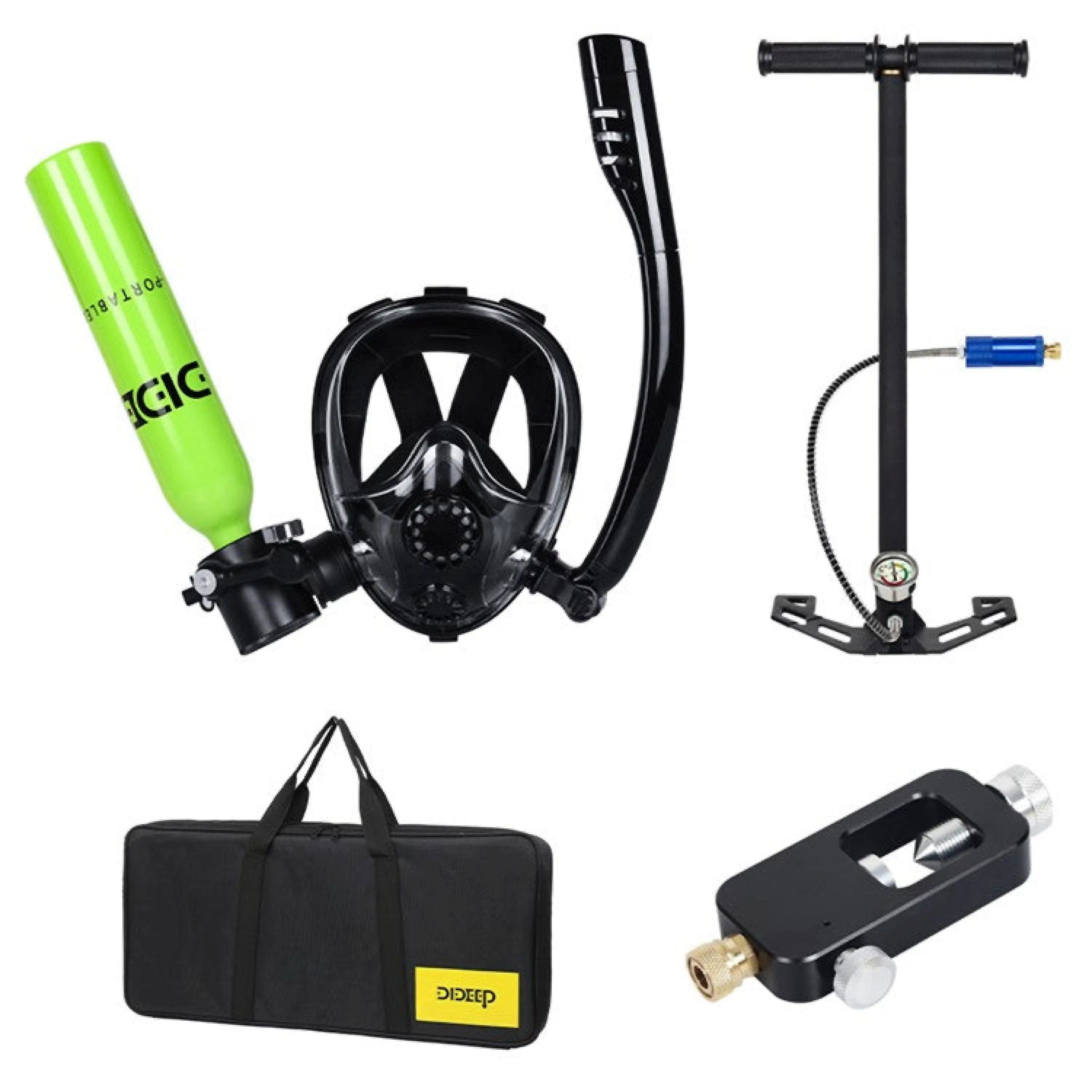 • Komplett-Set mit Maske: 0,5 L Flasche, Schnorchelmaske mit Atemrohr, Pumpe, Adapter, Tasche