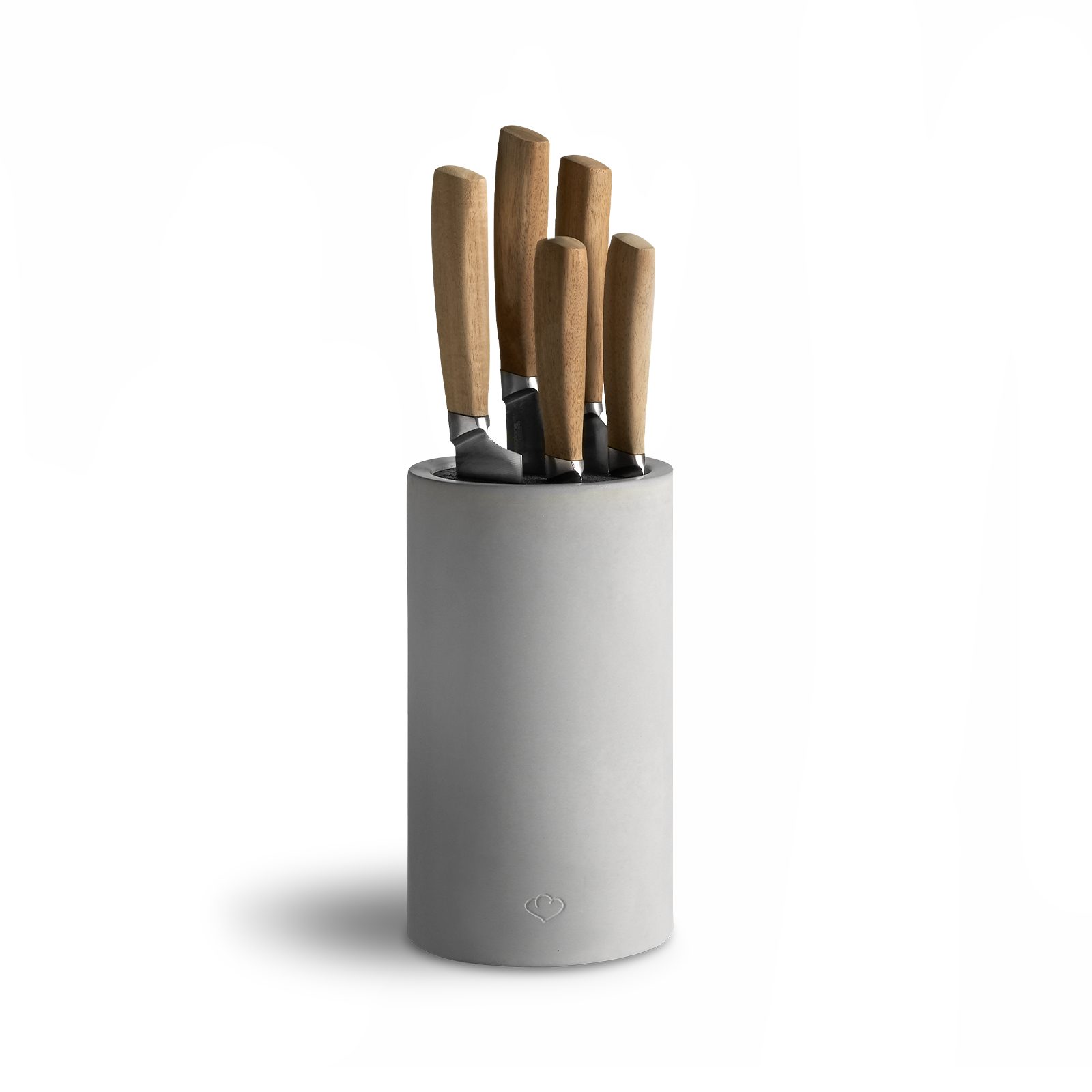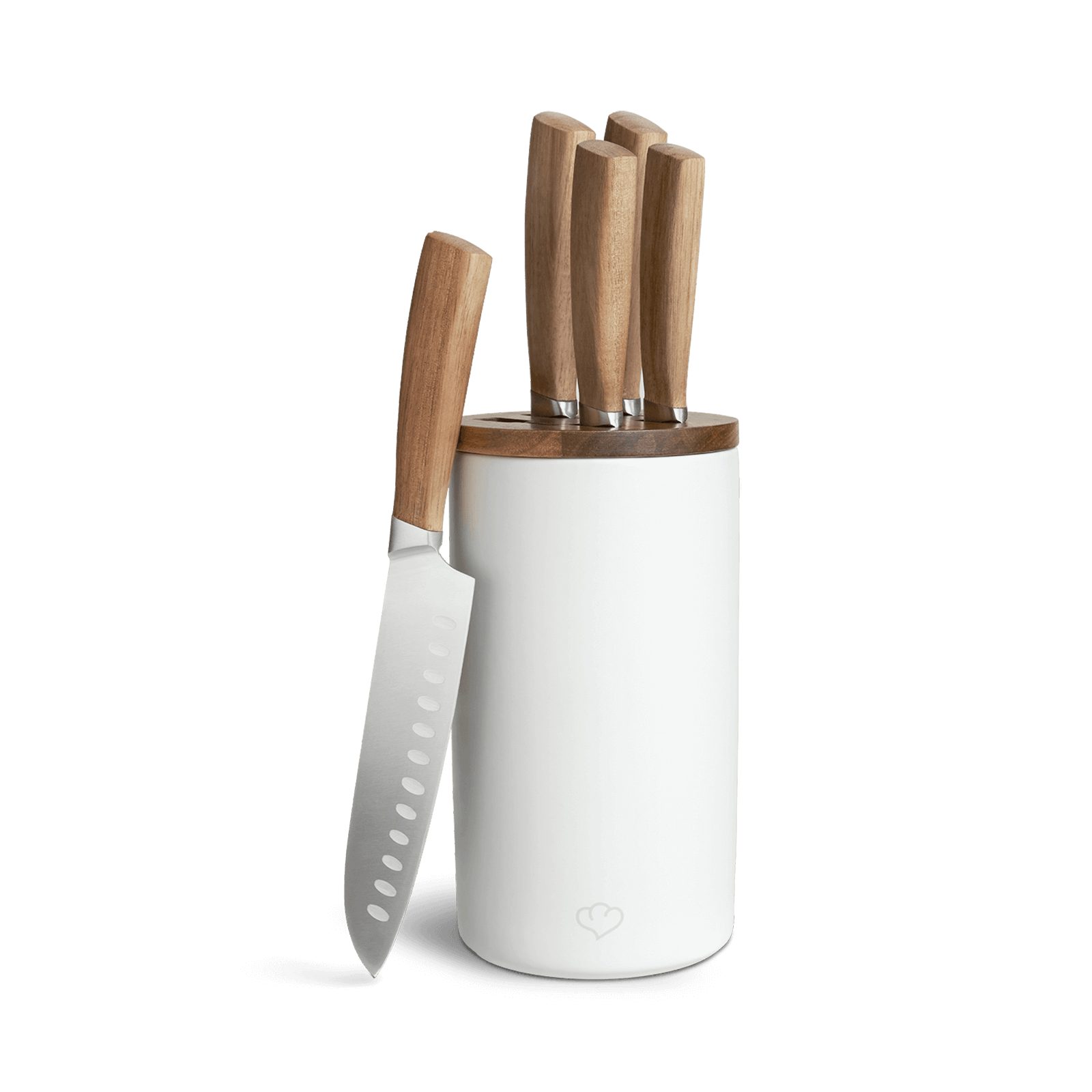 Eigenschaften Messerblock | Weißer Keramikblock im skandinavischen Design mit Akazienholzeinsatz kompakt platzsparend |