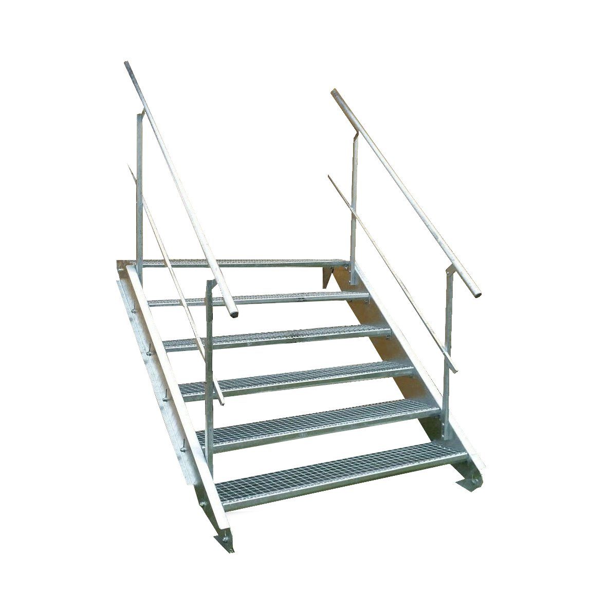 SRM Design Außentreppe 6 Stufen Stahltreppe beidseitig. Geländer Breite 100cm Höhe 90-120cm