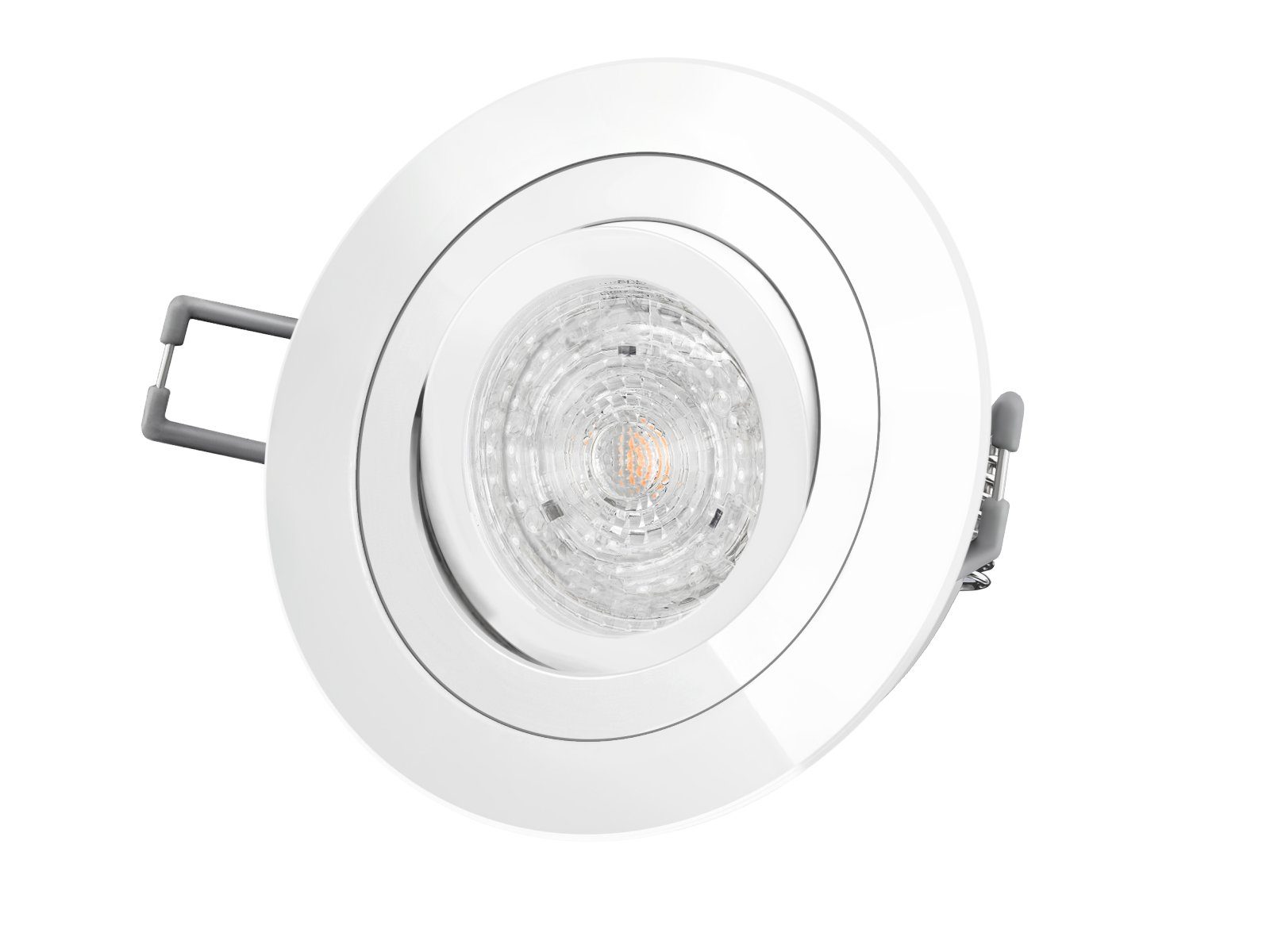 Schnörkellos und schön, mit glanzvollem Auftritt! Das ist die schwenkbare und stufenlos dimmbare Deckeneinbauleuchte RF-2 in der runden Варіанти. Ihr satt lackiertes, glänzend weißes Gehäuse überzeugt mit toller Verarbeitung und fügt sich einerseits harmonisch in weiße Decken ein oder erzeugt andererseits interessante Kontraste zu dunkleren Untergründen.