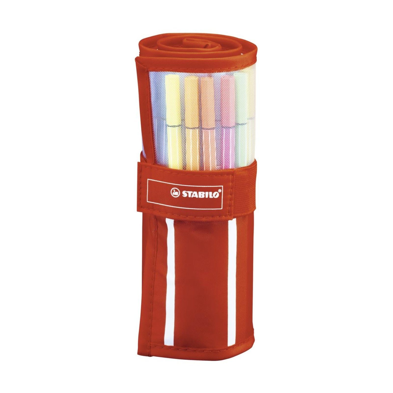 Das STABILO Pen 68 Rollset wird in einem praktischen Nylonetui geliefert, das über ein transparentes Sichtfenster, einen Klettverschluss und eine Innentasche mit Reißverschluss verfügt. Die markante rote Farbe mit weißen Streifen macht das Etui zum stilvollen Begleiter für unterwegs.