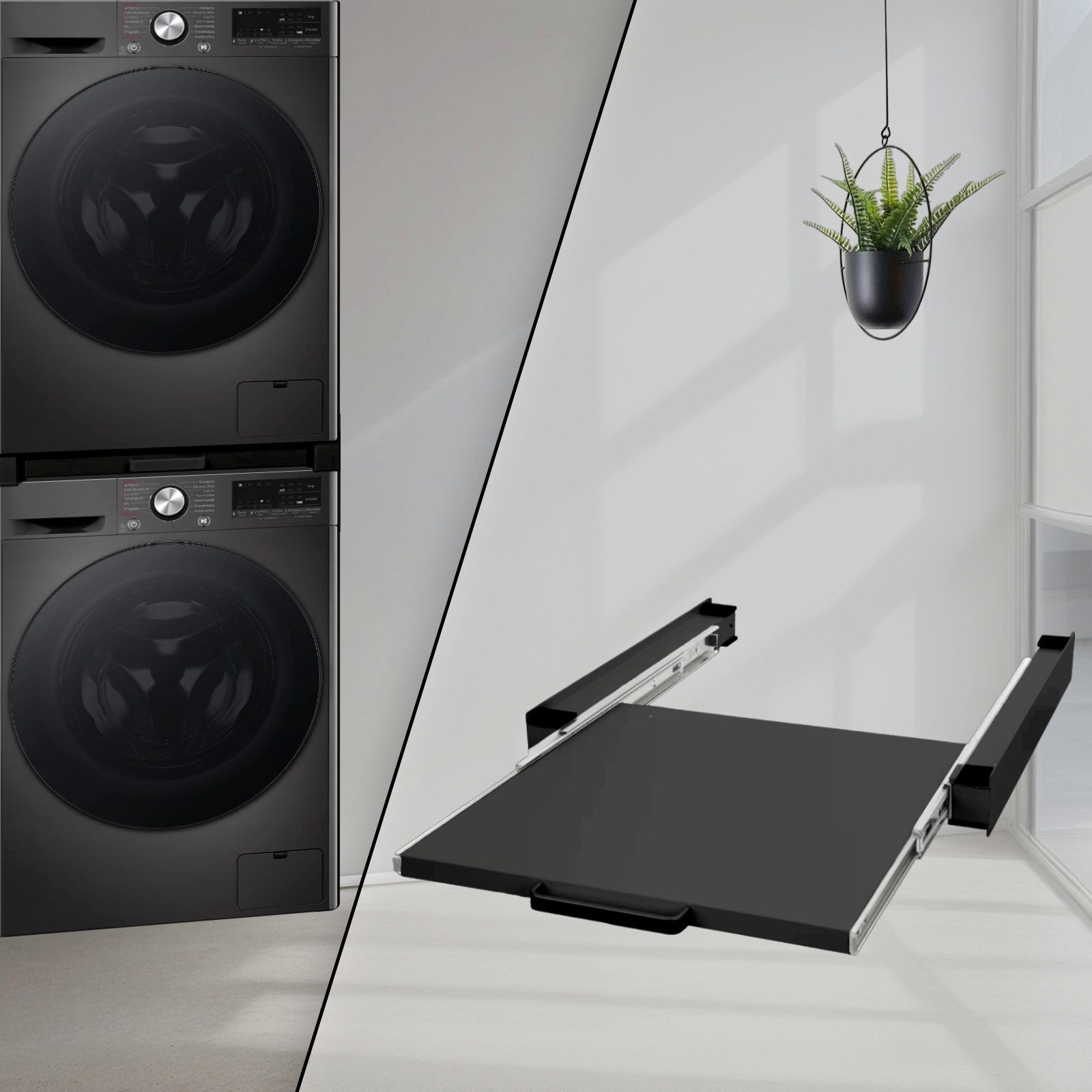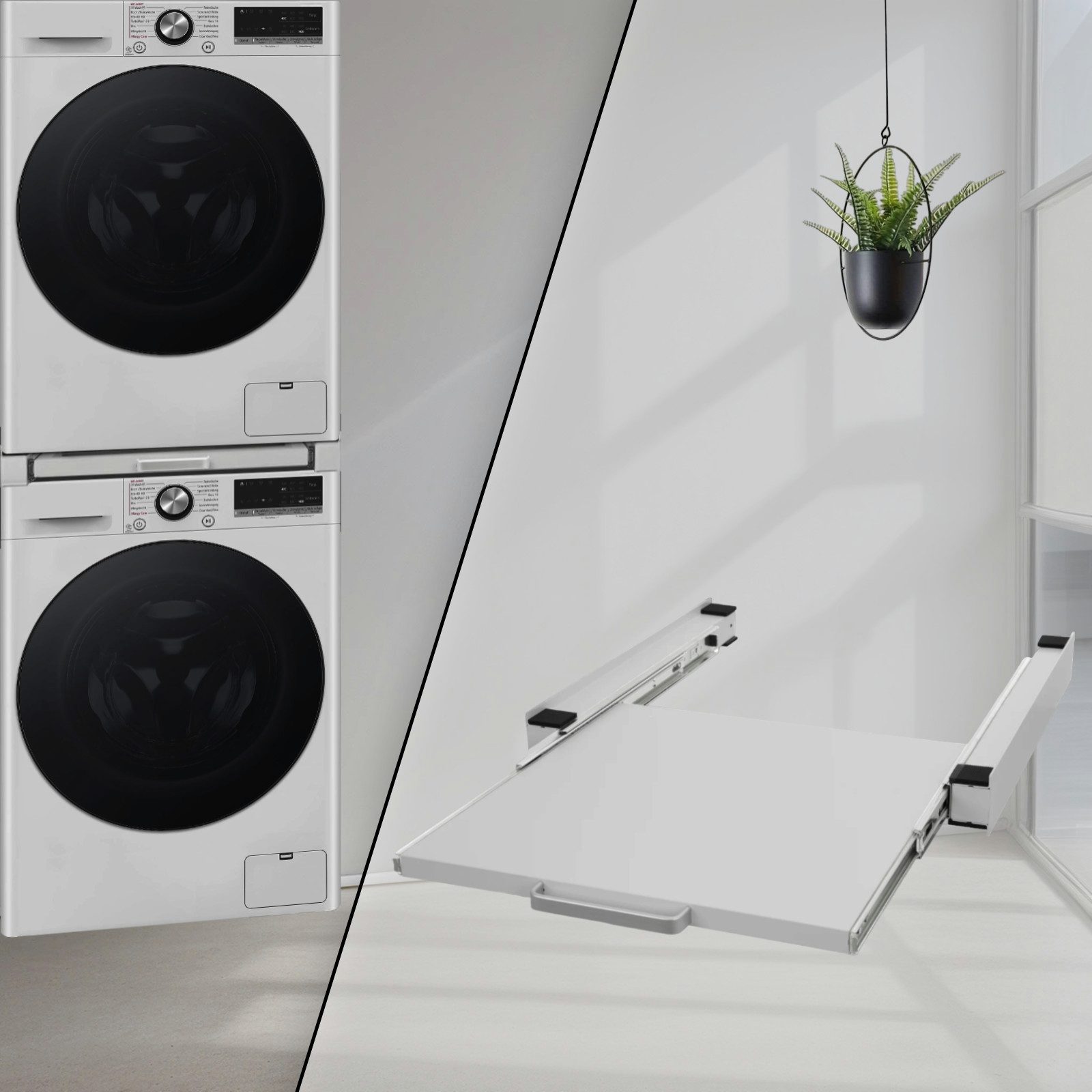 Die Vibrationen und Geräusche, die im täglichen Gebrauch durch die Waschmaschinen und Trockner verursacht werden, werden erheblich durch unsere Verbindungsrahmen gedämpft. Des Впередen können Sie mit unseren Zwischenbaurahmen Ihre Waschmaschine und Ihren Trockner stabil und sicher miteinander verbinden, sodass ein Verrutschen oder Herunterfallen Ihrer Geräte ausgeschlossen werden kann.