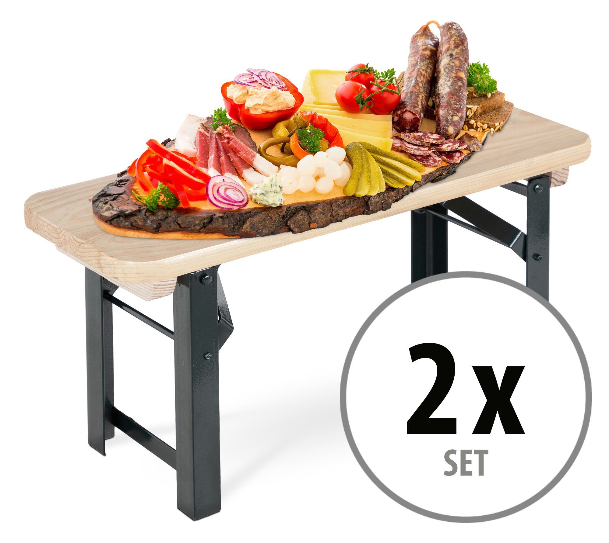 Sollte der Arbeitseifer in der Küche mal die wieder die gegebenen Platzverhältnisse überschritten haben, schafft das Bierzeltbankerl schnell Abhilfe. Einfach die stabilen Beine auseinandergeklappt und auf dem Tisch positioniert, sorgt diese zusätzliche Etage für mehr Stellfläche bei jeder Brotzeit. Durch den Aufbau in zwei Ebenen wird das gesamte Buffet gleichzeitig übersichtlicher, da z.B. Soßen oder Brot prominent platziert werden können. Dass die Optik des Aufsatzes zusätzlich gemütliche Assoziationen weckt, versteht sich von selbst.