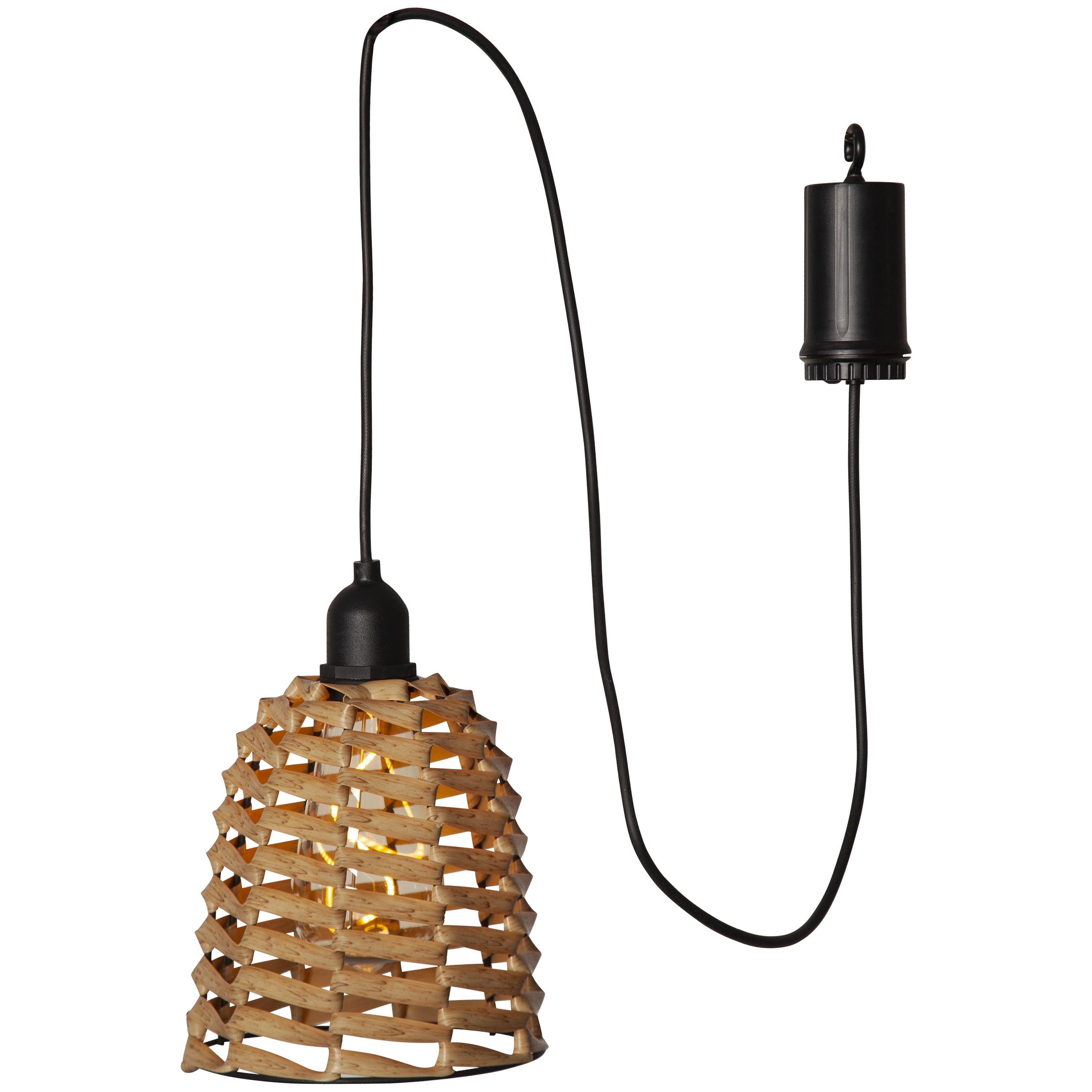 Diese Outdoor-Hängeleuchte mit Batteriebetrieb und Timer-Funktion vereint Funktionalität mit schönem, angesagtem Design in natürlichen Einflüssen.