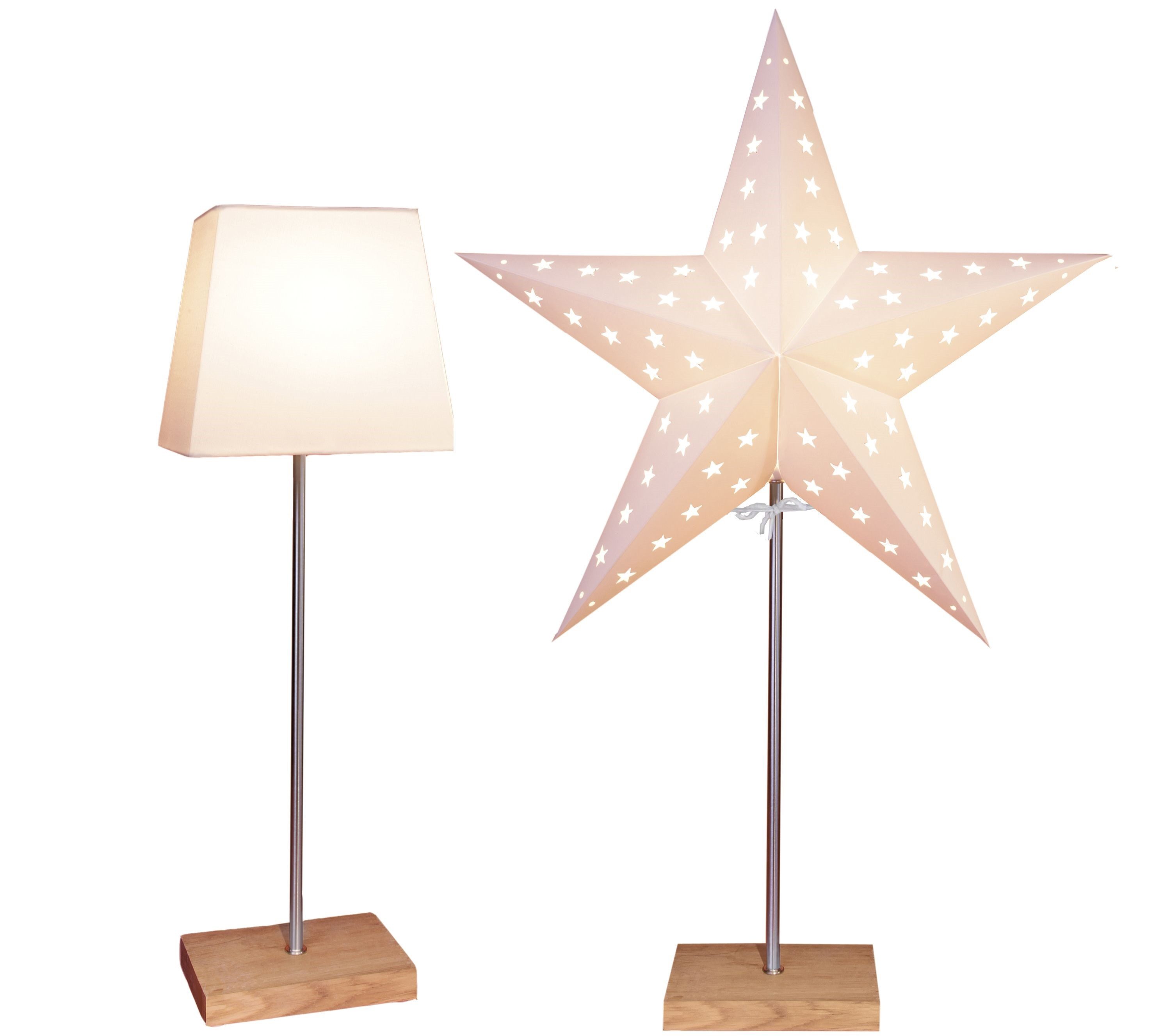 Der Lampenschirm ist ein sieben Zackiger Papierstern Weihnachten in Weiß. Dieser ist aus hochwertigem Papier hergestellt und wird mit einem Band aus Baumwolle verschlossen. Der Fuß der Weihnachtsstern Standleuchte ist aus hochwertigem Holz, Eisen und Kunststoff gefertigt. Zudem gehört zu dieser Lampe ein zweiter Lampenschirm, welchen Sie einfach austauschen können.