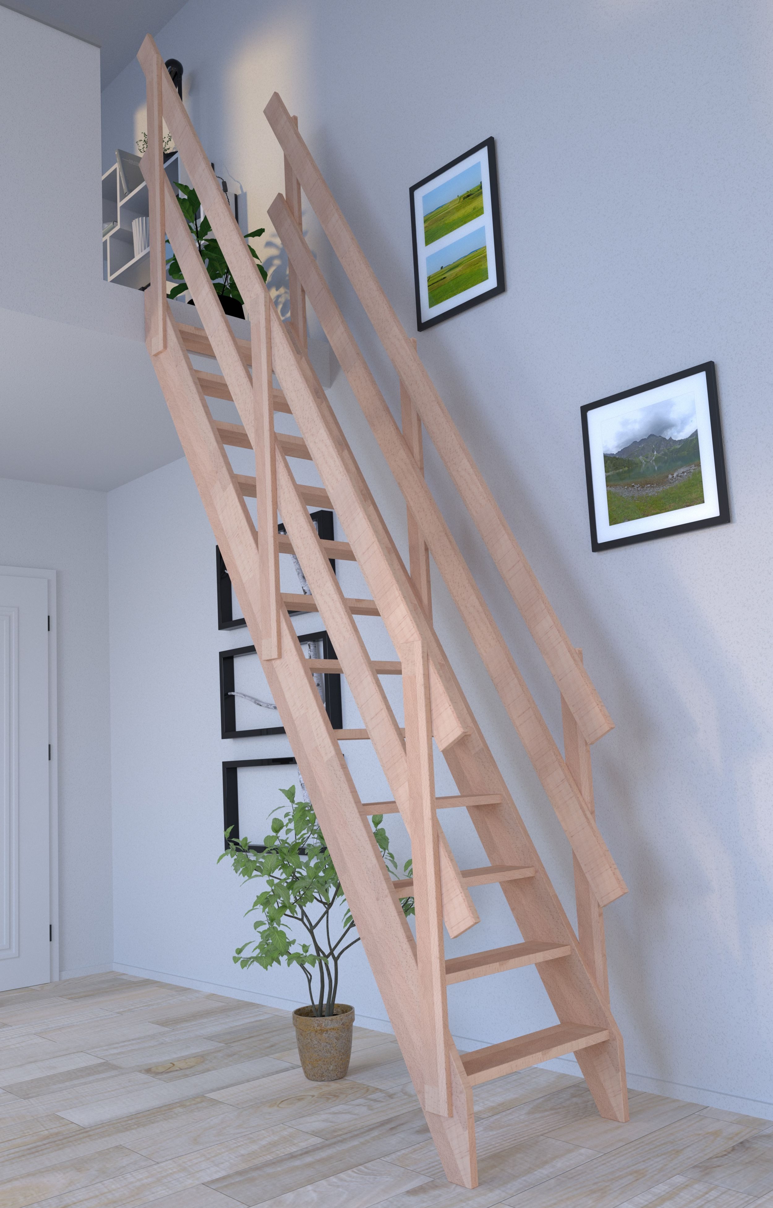 Mindestmaß Deckenöffnung: Diese Massivholzwangentreppe eignet sich für Deckenöffnungen ab den Maßen von ca. 59 x 120 cm.