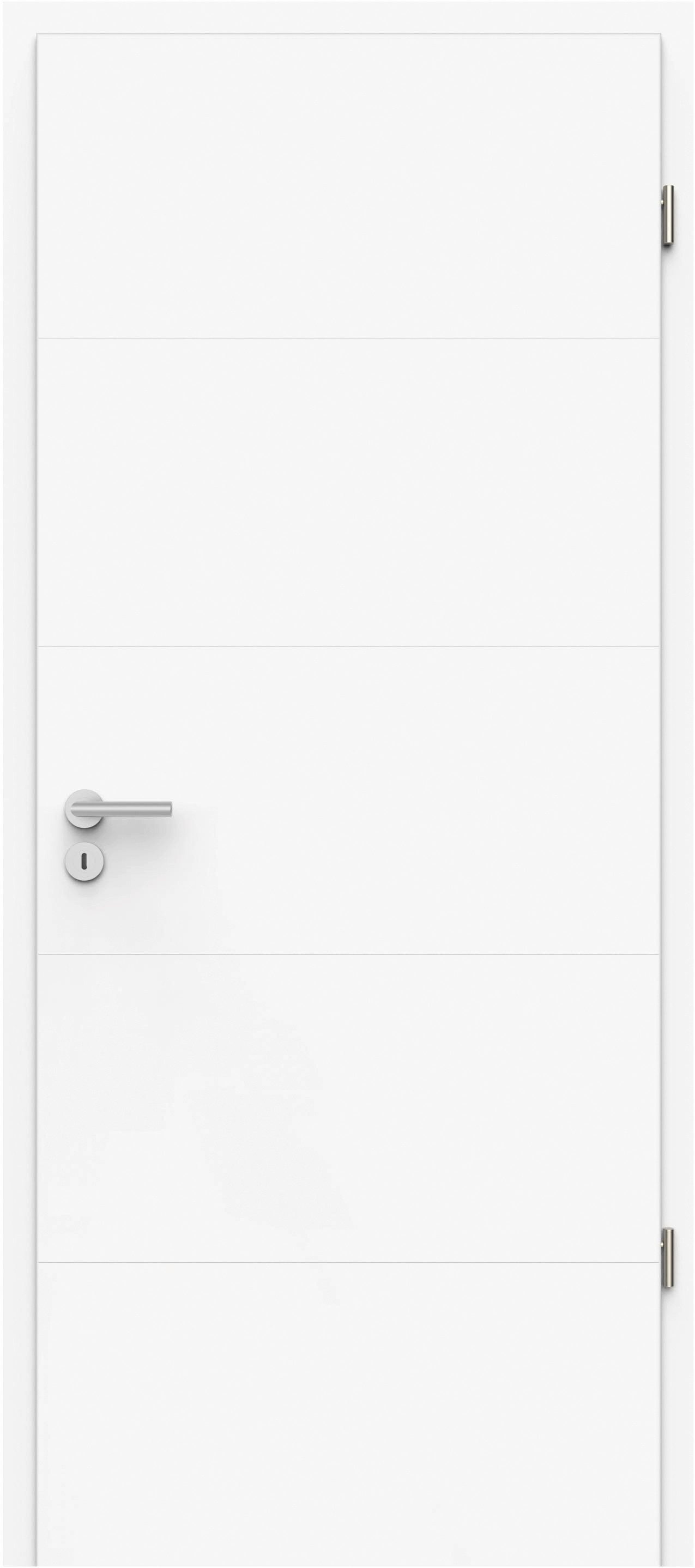 Ausstattung | 4 Protect Kante - 3-seitiger Kantenschutz in 0,8 mm ABS Prägnante 0,3 mm tiefe Streifen für ein markantes Design Umfassungszarge Hochwertiges MDF-Bekleidungsmaterial Vollmetall-Schraubverbinder - fugenlose Bekleidungsgehrung Nachjustierbare und stabile Eckverbindung mit Schrauben und farbigen Futterverbindern Hybrid-Metallbandtasche, 80 kg Tragkraft Beschichtung des Futterbretts verhindert die Feuchtigkeitsaufnahme aus der Wand Bündiges Schließblech mit zusätzlicher rückseitiger Verschraubung |