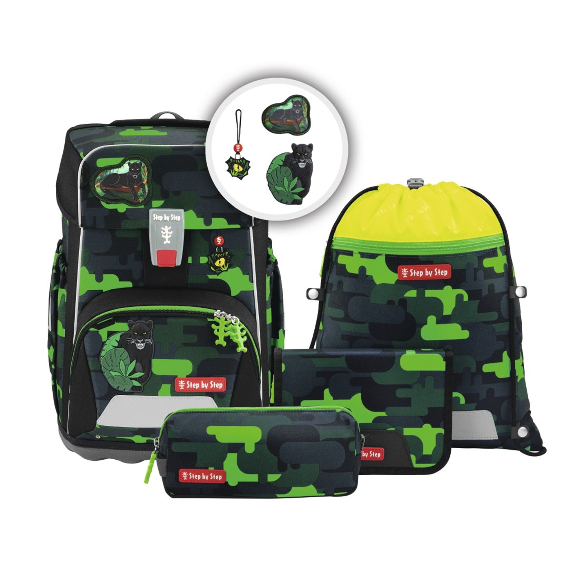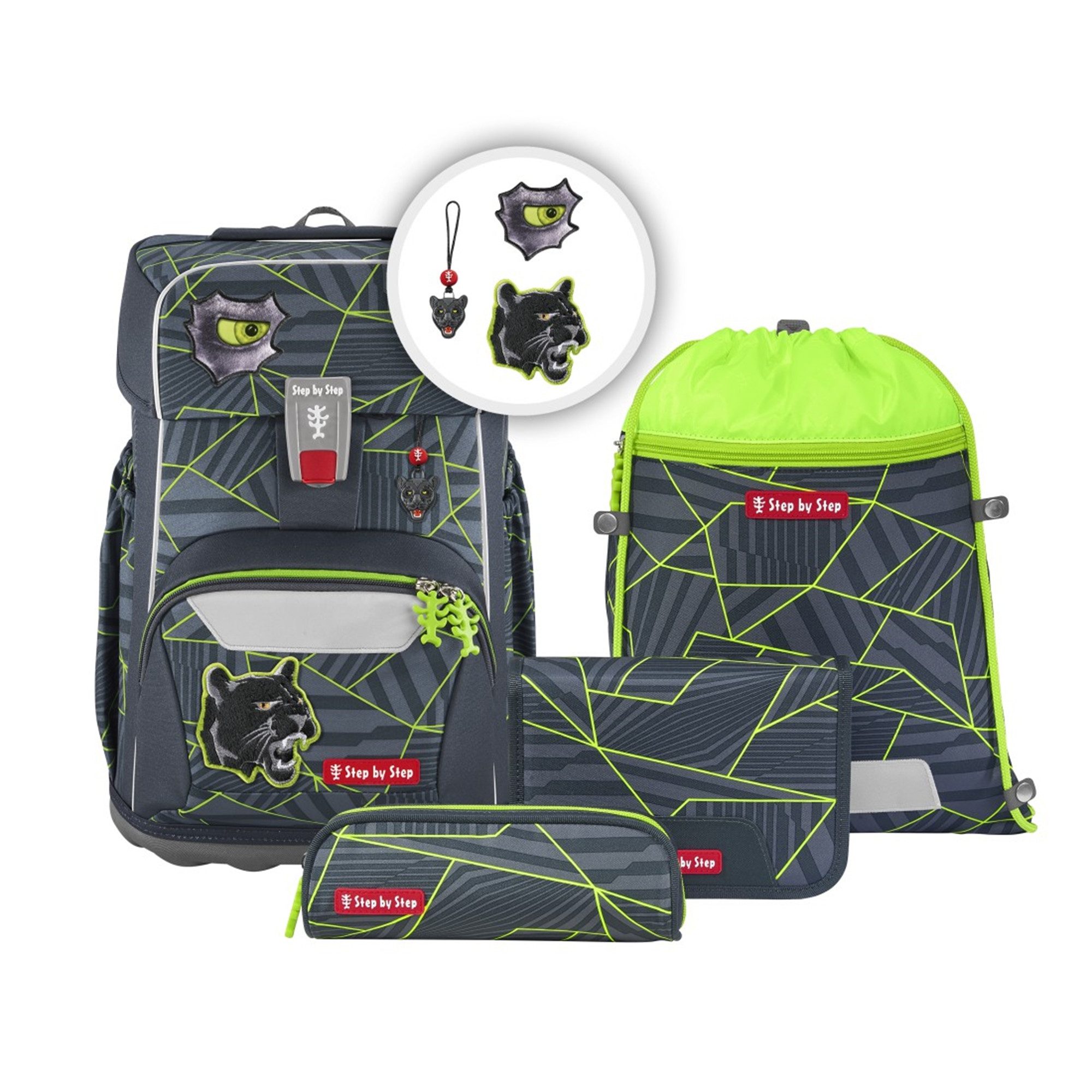 Leichter Schulranzen mit viel Stauraum: Der GIANT von Step by Step bietet mit seinem Hauptfach mit integriertem Bücherfach, der isolierten Vordertasche mit Auslaufösen und den zwei Seitentaschen mit Reißverschluss und Auslaufösen viel Stauraum für die komplette Schulausrüstung. Unter dem Deckel des Schulranzens befinden sich zwei Laschen zur Fixierung des Federmäppchens. Dieses ist im Lieferumfang bereits enthalten und schon mit 7 Jumbo Farb-Markenstiften, 12 Farb-Markenstiften, 1 Bleistift, 1 Lineal, 1 Geodreieck, 1 Doppelspitzer und 1 Radiergummi ausgestattet. Ein Schlampermäppchen und Sportbeutel sind ebenso im Schulranzen-Set enthalten wie ein Set der Step by Step MAGIC MAGS, mit denen sich der Ranzen individuell gestalten lässt. Ein mitgeliefertes Set enthält zwei Magnetbilder und einen Anhänger. Trotz eines Gesamtvolumens von 23 Litern, wiegt der GIANT nur 990g (mit Zubehör und MAGIC MAGS 1. 800g) und ist somit vor allem für leichte und zierliche Kinder geeignet. Möglich wird dies durch die im Ranzenrücken verarbeitete elastische und ultraleichte Fiberglas-Konstruktion. Größenverstellbar amp; optimaler Tragekomfort: Im Innenraum des Ranzens befindet sich ein Drehgriff, mit dem die Höhe der Schulterträger und damit die Rückenlänge des Ranzens individuell an die Körpergröße (120 – 170 cm) Deines Kindes angepasst werden können. Der höhenverstellbare Brust- sowie der abnehmbare Hüftgurt sorgen für die optimale Passform und dafür, dass das Gewicht des Ranzens auf den ganzen Körper des Kindes verteilt wird. Die ergonomisch geformten Schulterträger sowie das vorgeformte Rückenpolster ermöglichen zudem einen bequemen Sitz und ein perfektes Tragegefühl. Auf der Fronttasche, den Seitenflächen und Schultergurten der Schultasche sind reflektierende Elemente der Marke Oralite angebracht. So ist Dein Kind auch im Dunkeln oder bei schlechtem Wetter gut sichtbar.