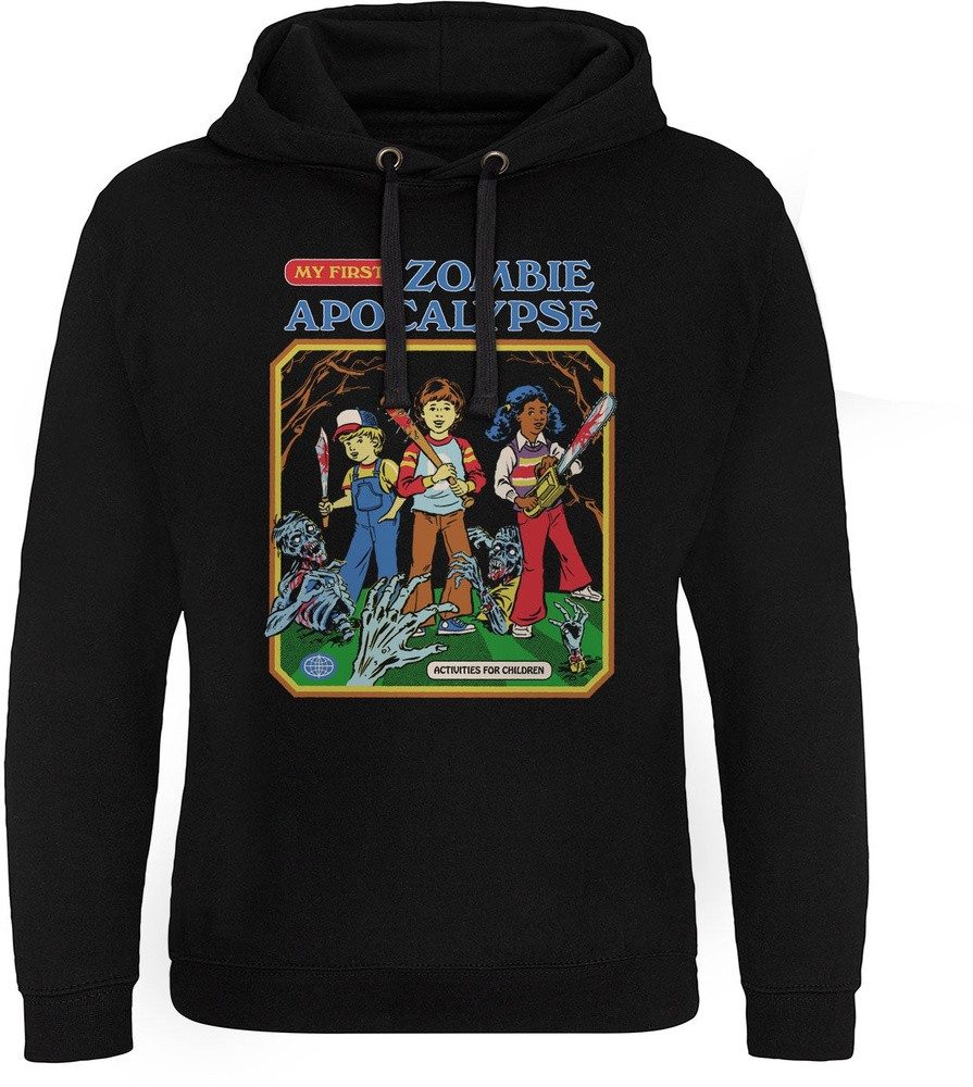 Das Steven Rhodes My First Zombie Apocalypse Epic Hoodie ist ein Must-Have für alle Fans des Retro-Looks und des Zombiegenres. Das dunkle Design mit dem auffälligen Print auf der Vorderseite verleiht diesem Hoodie einen einzigartigen und coolen Look. Die hochwertige Verarbeitung sorgt zudem für einen angenehmen Tragekomfort und eine lange Haltbarkeit. Mit seinem bequemen Schnitt und der Kapuze ist dieses Hoodie perfekt für gemütliche Tage zu Hause oder lässige Streetstyle-Looks. Kombiniert mit Jeans und Sneakern wird es zum absoluten Eyecatcher. Egal ob beim Treffen mit Freunden oder beim entspannten Abhängen auf der Couch, dieses Hoodie ist immer die richtige Wahl. Das Steven Rhodes My First Zombie Apocalypse Epic Hoodie ist in verschiedenen Größen erhältlich und besteht aus hochwertigen Materialien, die für eine optimale Passform und Langlebigkeit sorgen. Holen Sie sich jetzt dieses coole Hoodie und zeigen Sie Ihre Liebe zum Zombiegenre auf stylische Weise!