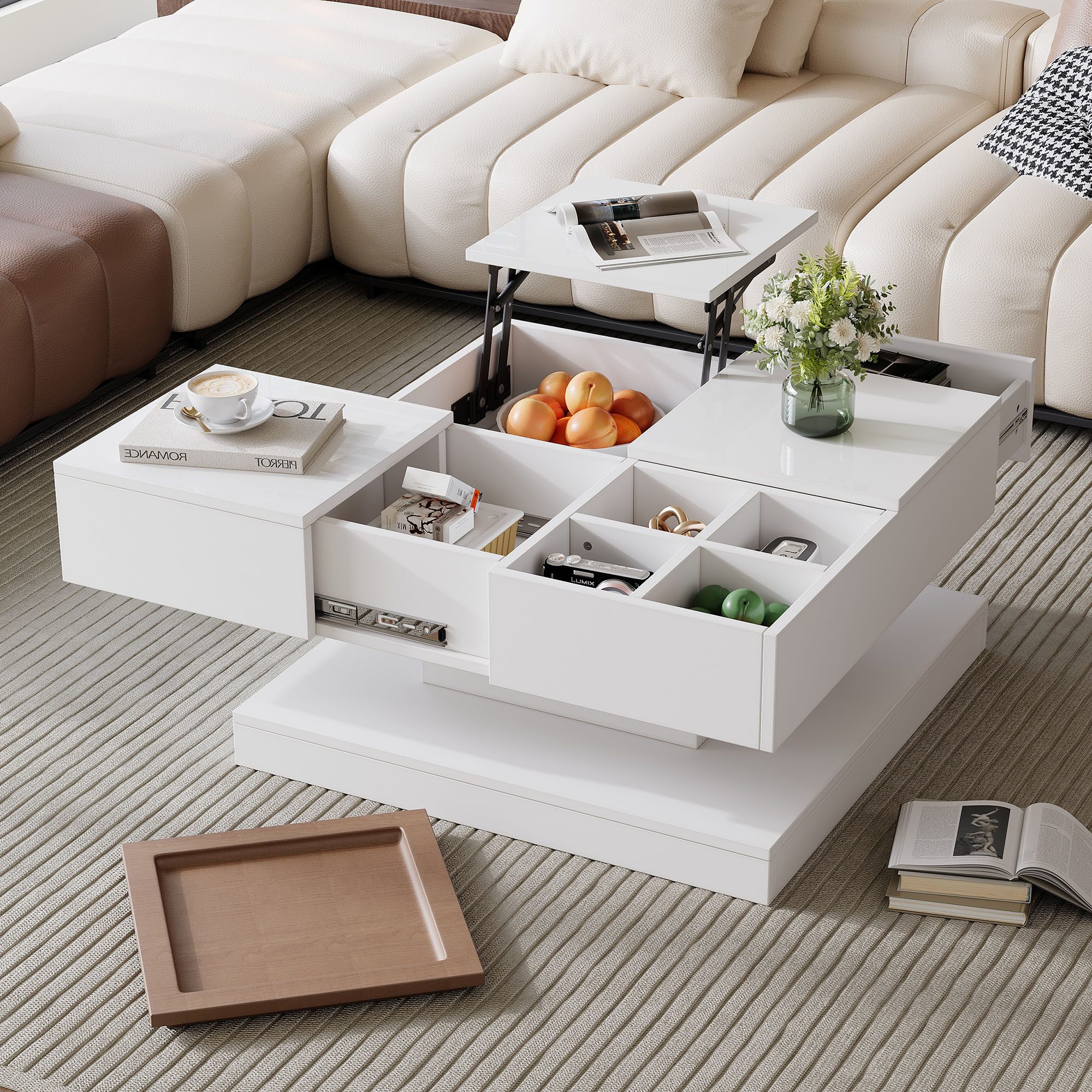 Multifunktionaler Couchtisch mit vier Zonen – stilvoll, durchdacht und flexibel im Alltag