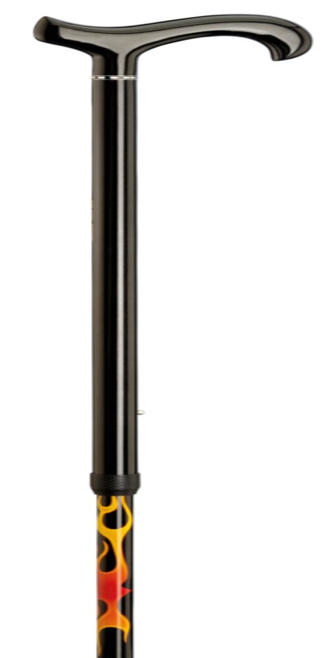 Das besondere „Flames“-Design mit dynamischer Flammenoptik macht diesen Gehstock zu einem echten Blickfang und hebt ihn von klassischen Modellen ab. Der ergonomisch geformte Derby-Griff sorgt für eine angenehme Handhabung und entlastet Handflächen sowie Handgelenke, auch bei längerer Nutzung.