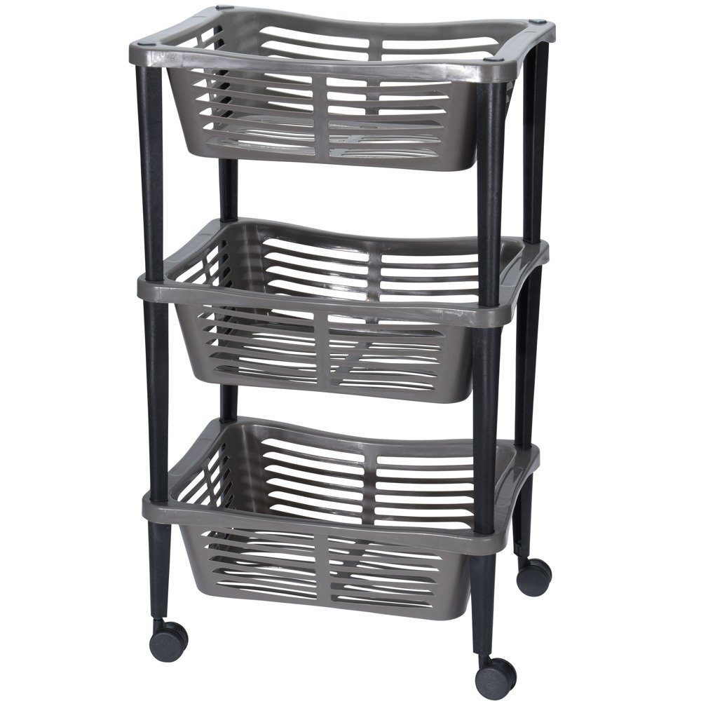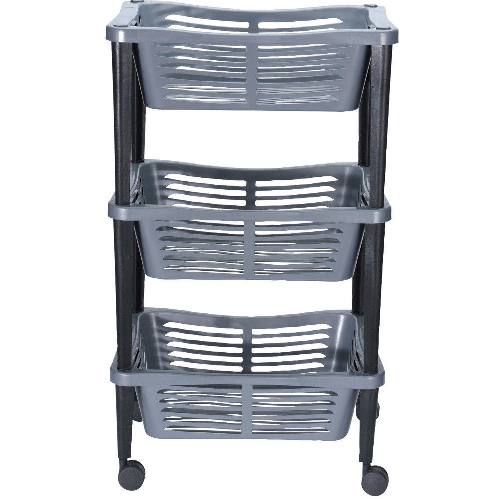 <Universal, 3-level Kutsche auf Rädern für den vielseitigen Einsatz im Haushalt. Darüber hinaus funktioniert es auch gut in einem Keller, einer Werkstatt oder Garage. Es kann sowohl in der Küche zur Aufbewahrung von Gemüse, Obst, Lebensmittelbehälter oder Utensilien als auch im Bad zur Aufbewahrung von Kosmetika und Badezubehör verwendet werden. Die faltbaren kleinen Körbe - sind ineinander versenkbar. Ausgestattet mit vier Beinen für eine einfache Bewegung an jedem Ort. Der Wagen ist stabil, leicht und bequem zu reinigen.