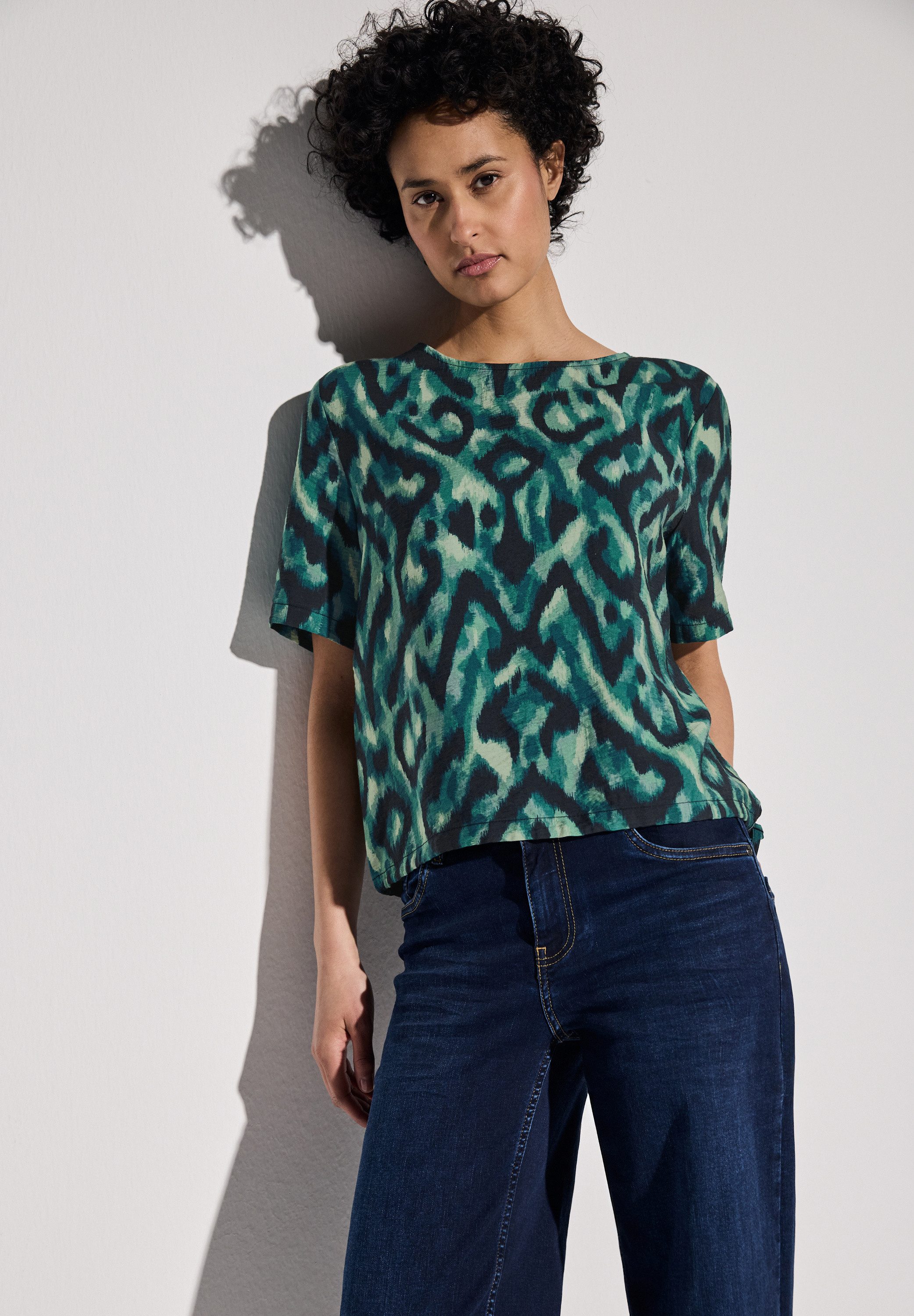 Schau dir die Kurzarmbluse von STREET ONE mal genauer an. Durch den Print und den Tunnelzug wirkt sie sowohl locker als auch frisch. Diese Bluse hat einen Rundhalsausschnitt und ist hüftbedeckend sowie komfortabel geschnitten, sodass du dich wohlfühlst.