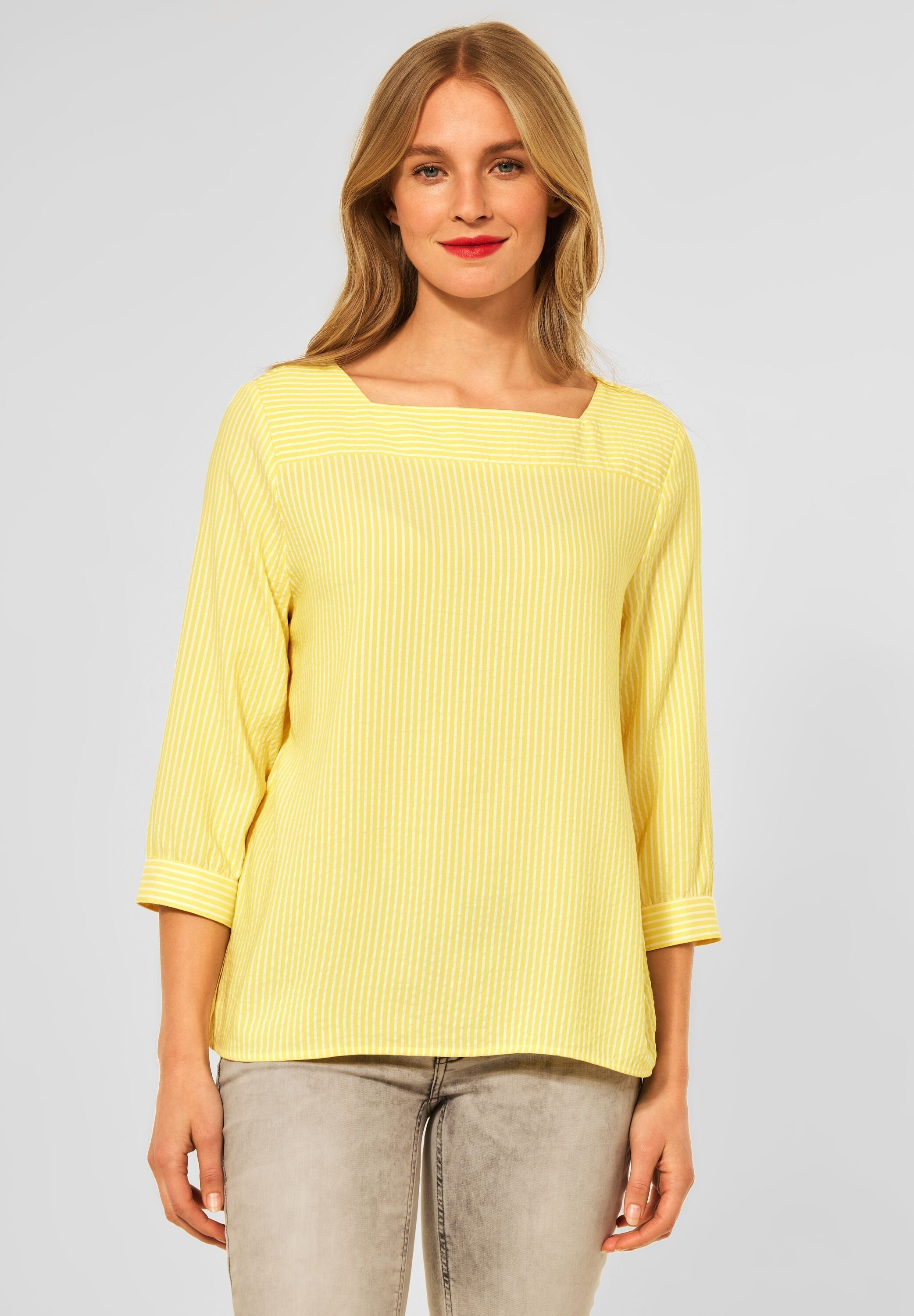 Ob für alltägliche Outfits oder für den eleganten Auftritt - diese Basicstyle Bluse von Street One lässt sich vielseitig kombinieren. Dass das zweifarbige Streifendesign die tragende Rolle spielt, versteht sich schon auf den ersten Blick. Der leger geschnittene Style unterstützt einen sportiven Look. Mit dem 3/4 langen Arm strahlt die Damenbluse eine gekonnte Lässigkeit aus. Ein eleganter U-Boot Ausschnitt in Karrèe Form verstärkt den lässigen Style auf eine besondere Weise. Der softe Material Mix ist ein Detail der überlegenen Qualität.
