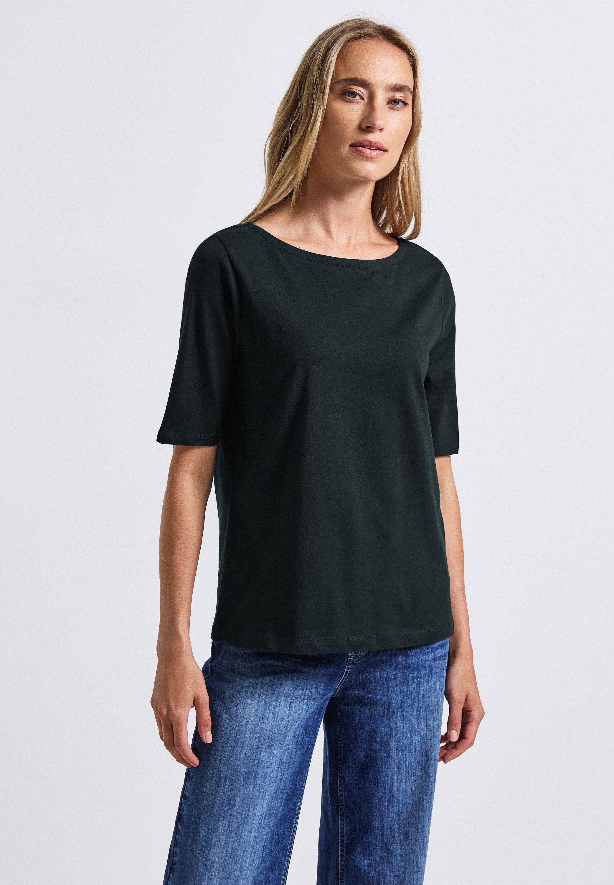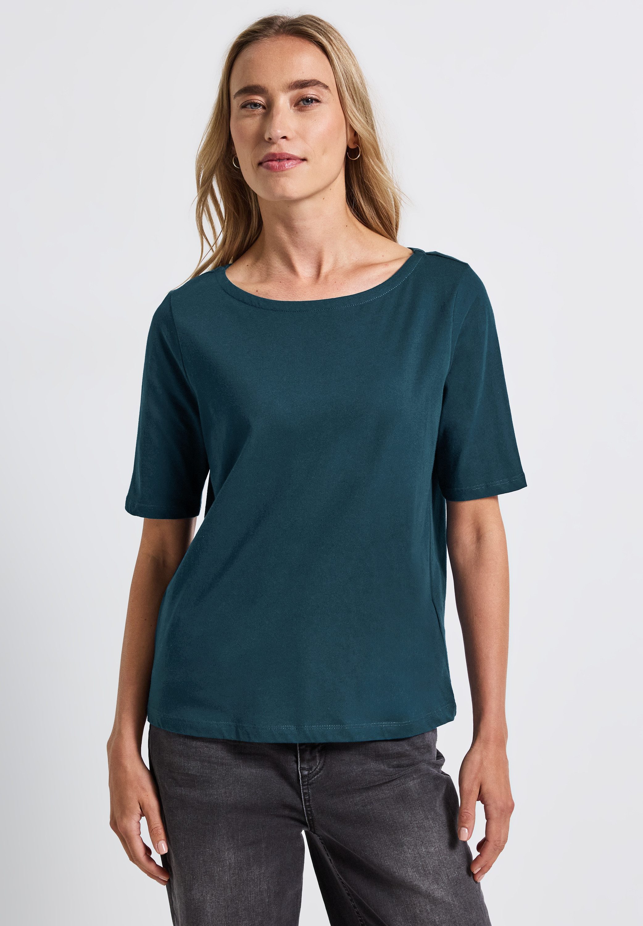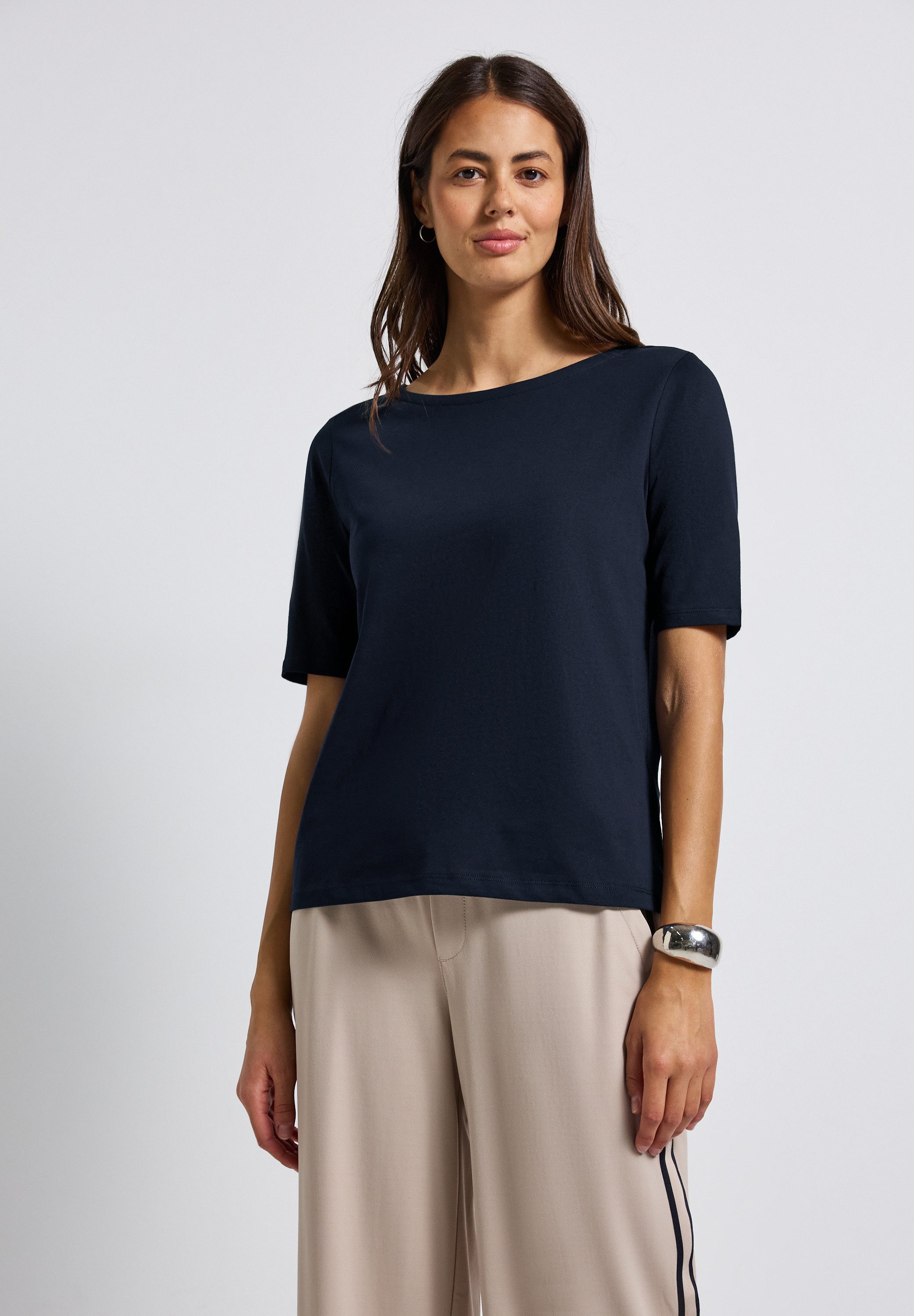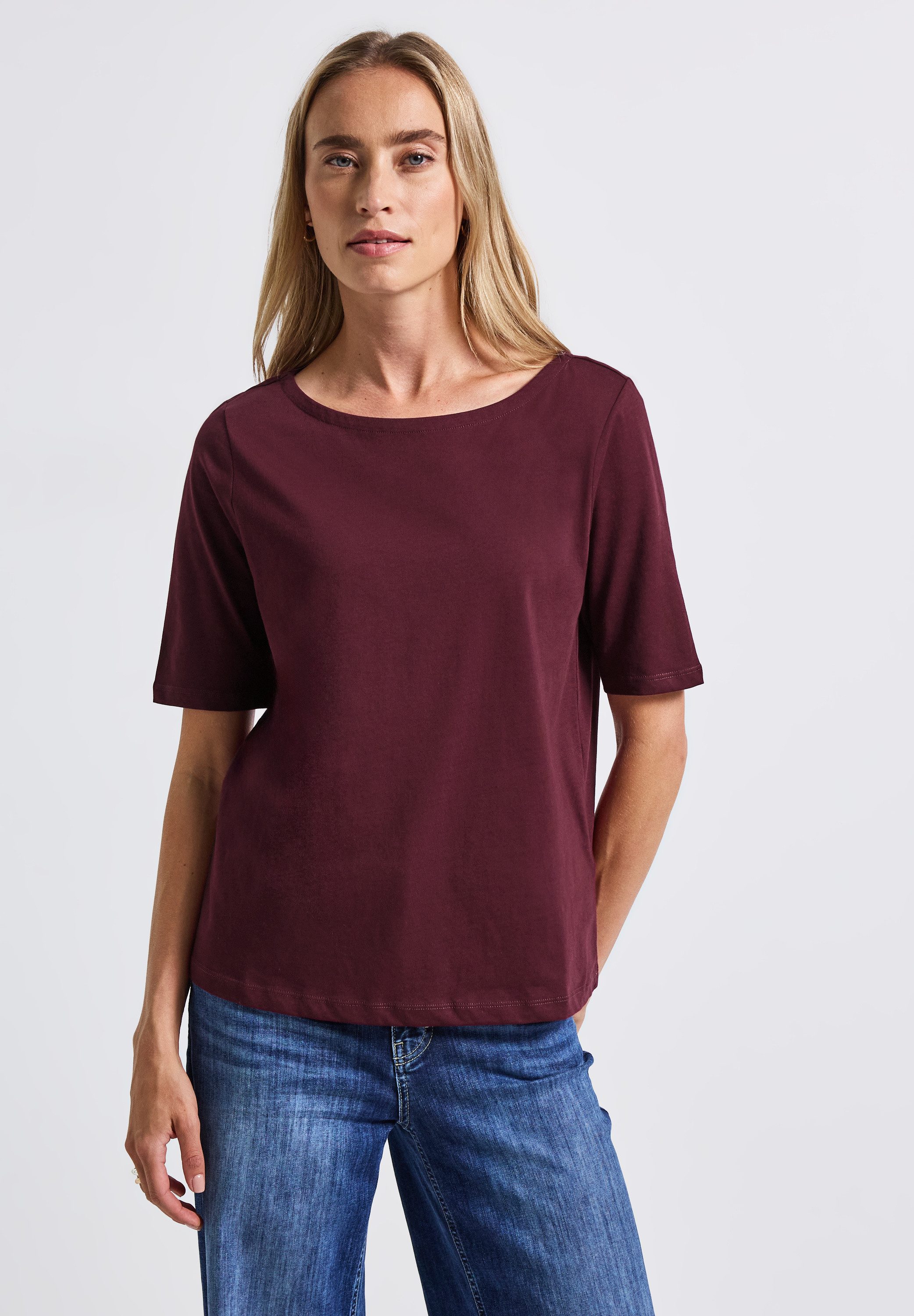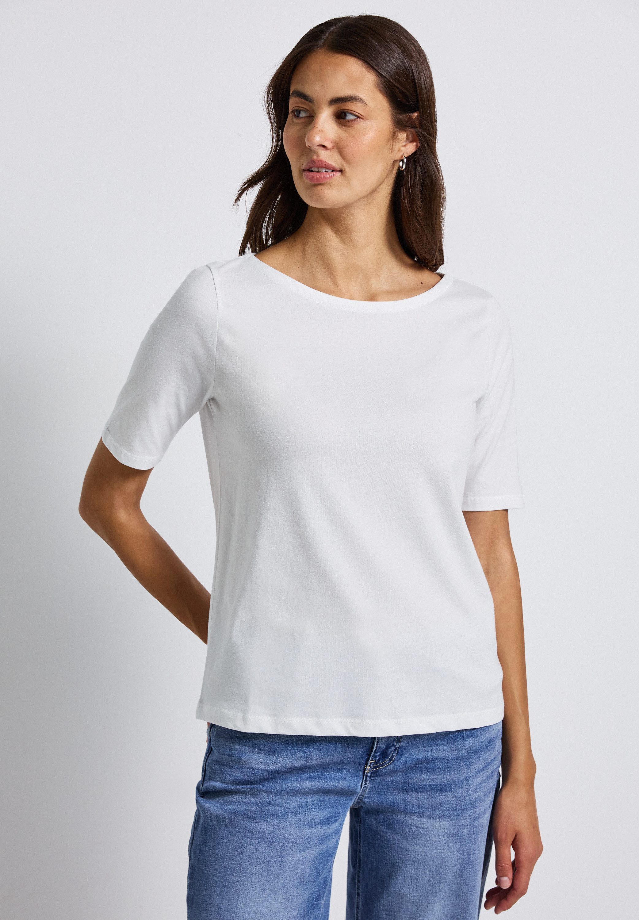 Das T-Shirt von STREET ONE bildet die Grundlage für jedes stilsichere Outfit. Dieses Shirt hat einen U-Boot-Ausschnitt und ist normal sowie basic geschnitten, sodass dein Oberkörper dezent in Szene gesetzt wird.