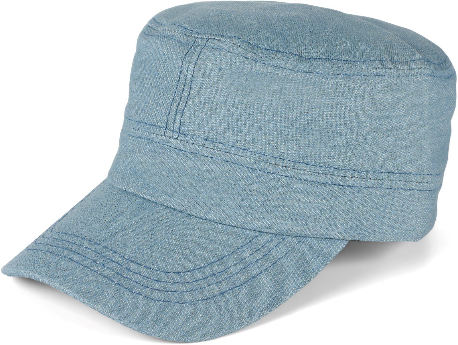 styleBREAKER Denim Military Cap aus robustem einfarbigem Baumwoll Jeansstoff.