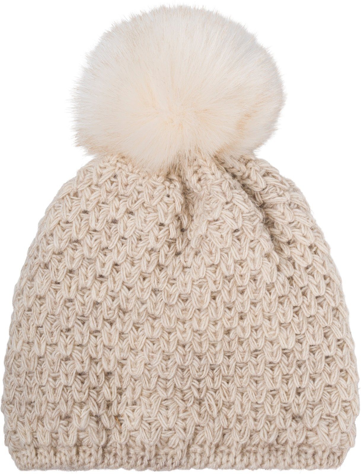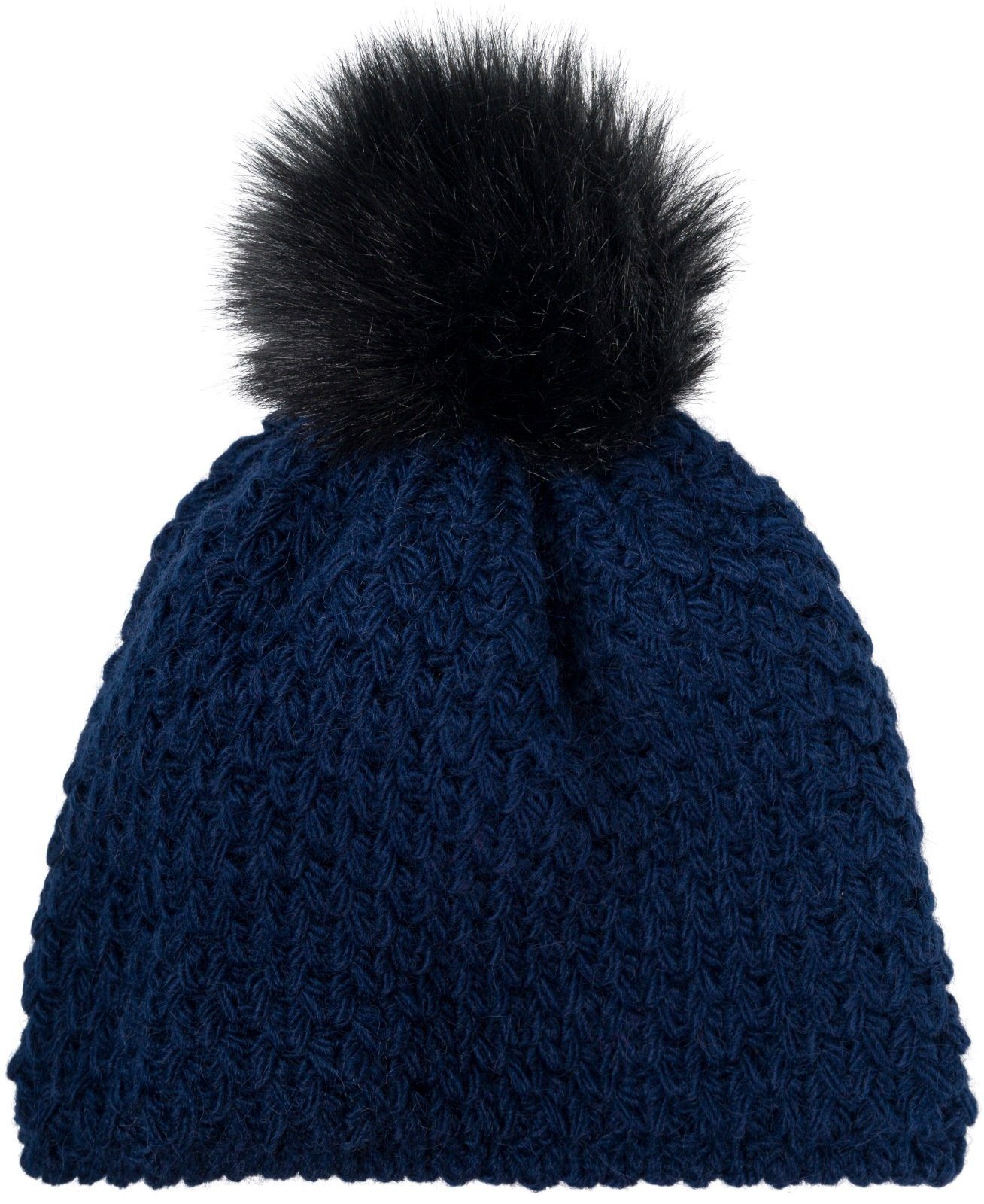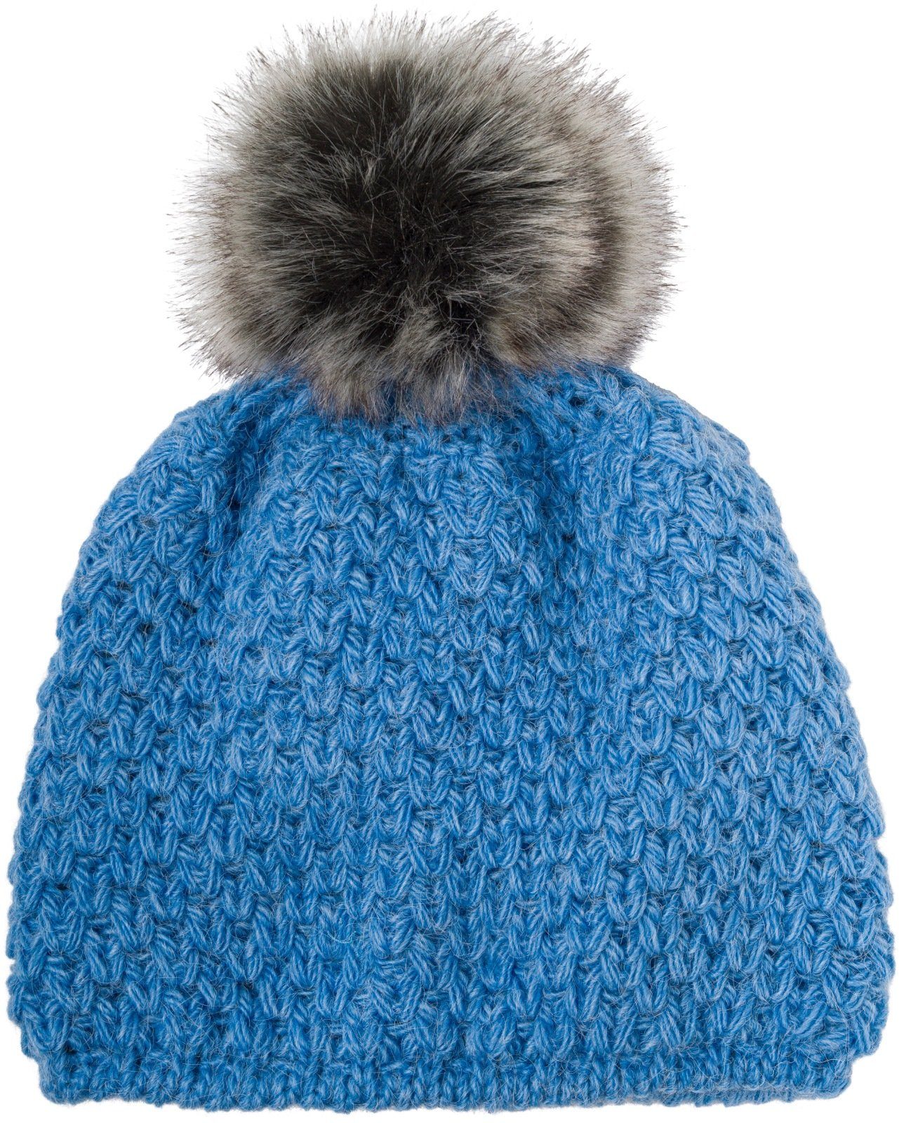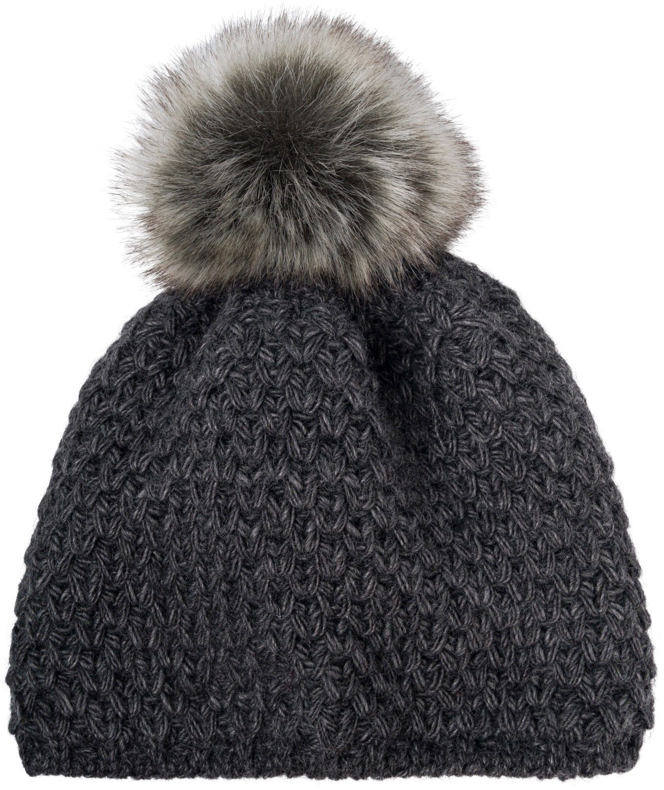 styleBREAKER Kinder Kunstfell Bommelmütze Gehäkelt mit V-Muster und Thermo-Fleece Futter.