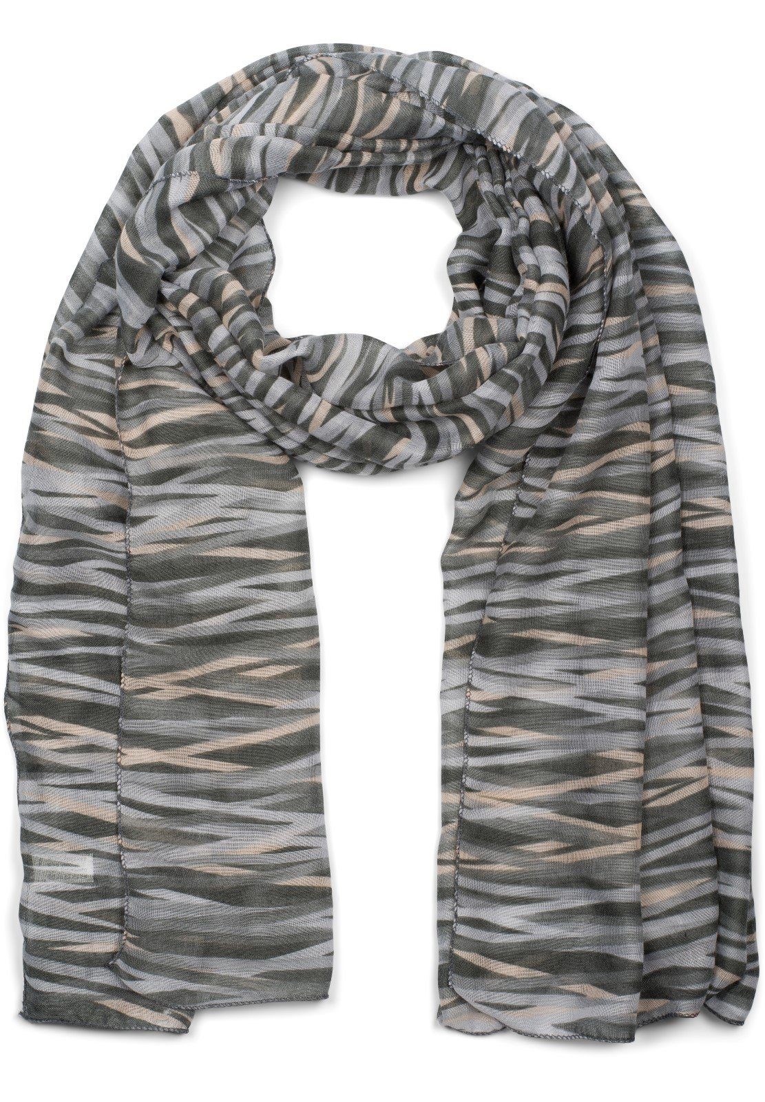 styleBREAKER luftig leichter langer Schal mit buntem überlappendem Streifen Muster.