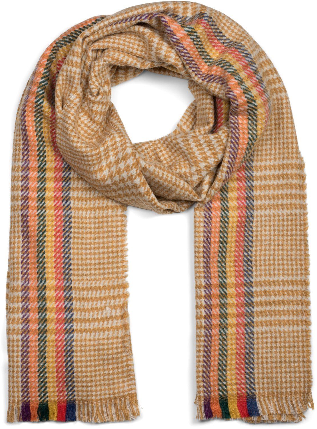 styleBREAKER edler kuschlig weicher Schal mit Pepita Hahnentritt Muster, bunten Streifen und umlaufenden kurzen Fransen.