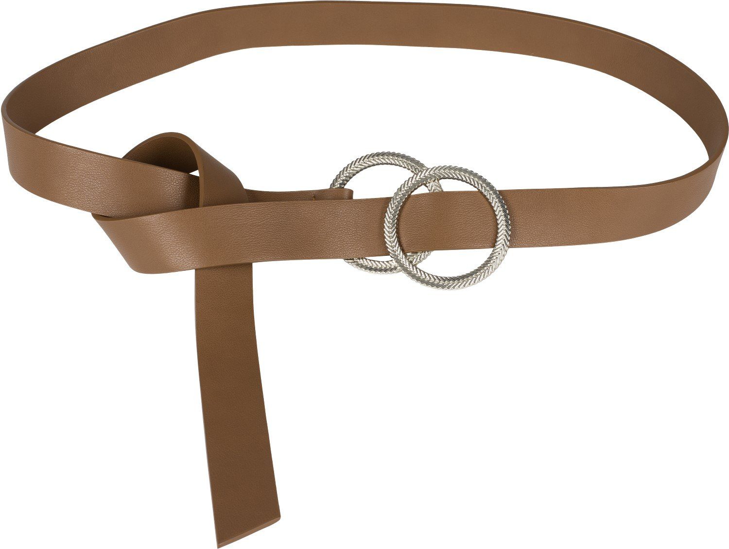 styleBREAKER edler einfarbiger Taillengürtel mit doppelter überlappender Ringschnalle mit Prägung in Fischgrät Optik - Einheitsgröße