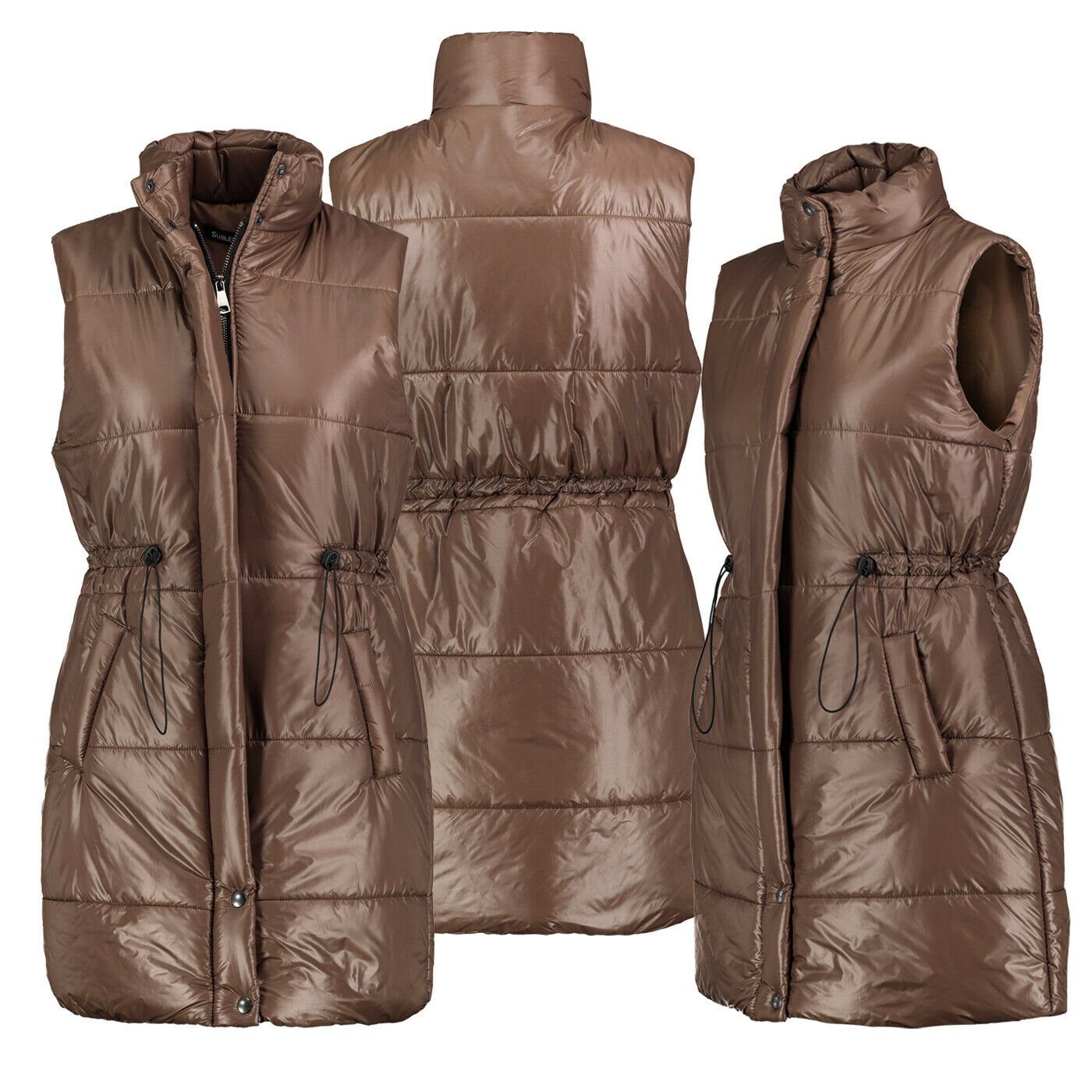 Besondere Merkmale | Damen Lange Steppweste Weste Bodywarmer Windbreaker Übergangsjacke |