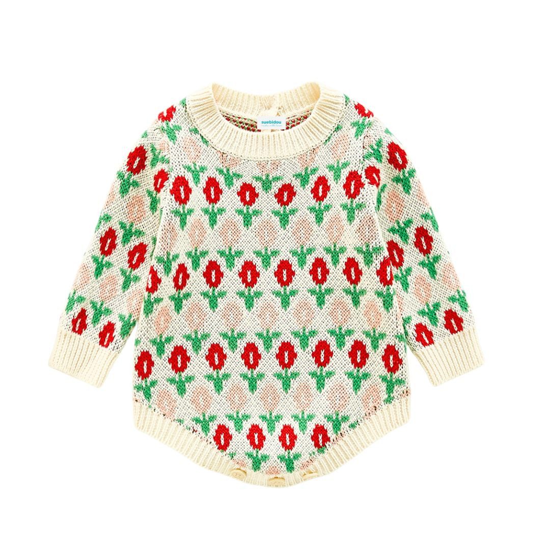 Vielseitig kombinierbar: Der Strick-Body „Flowers“ lässt sich perfekt mit Hosen, Strumpfhosen oder Röcken kombinieren und passt zu jedem Anlass.